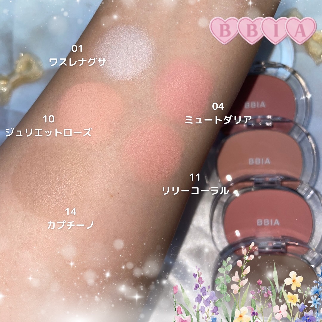 ほわっとした発色でカラバリもたくさん♡BBIA【リニューアル】ラストブラッシュパッケージがシンプルにかわいくリニューアル!✨04ミュートダリア10ジュリエットローズ11リリーコーラル14カプチーノポイント💡ふんわりとした発色してくれて重ね付け...