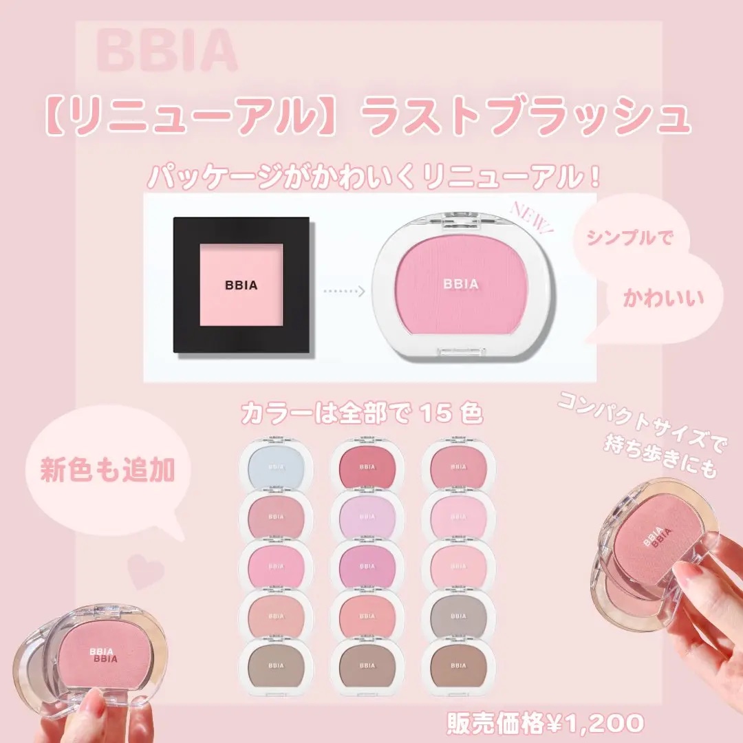 BBIA@bbia.japanラストブラッシュ🩷💜🧡人気チークが新パッケージ&新テクスチャーでリニューアル💐🩷BBIAのアイデンティティが詰まったミニマルなケースに、柔らかくて高級感のある密着パウダー🥺粉飛びしにくくて、肌に自然になじむからメ...