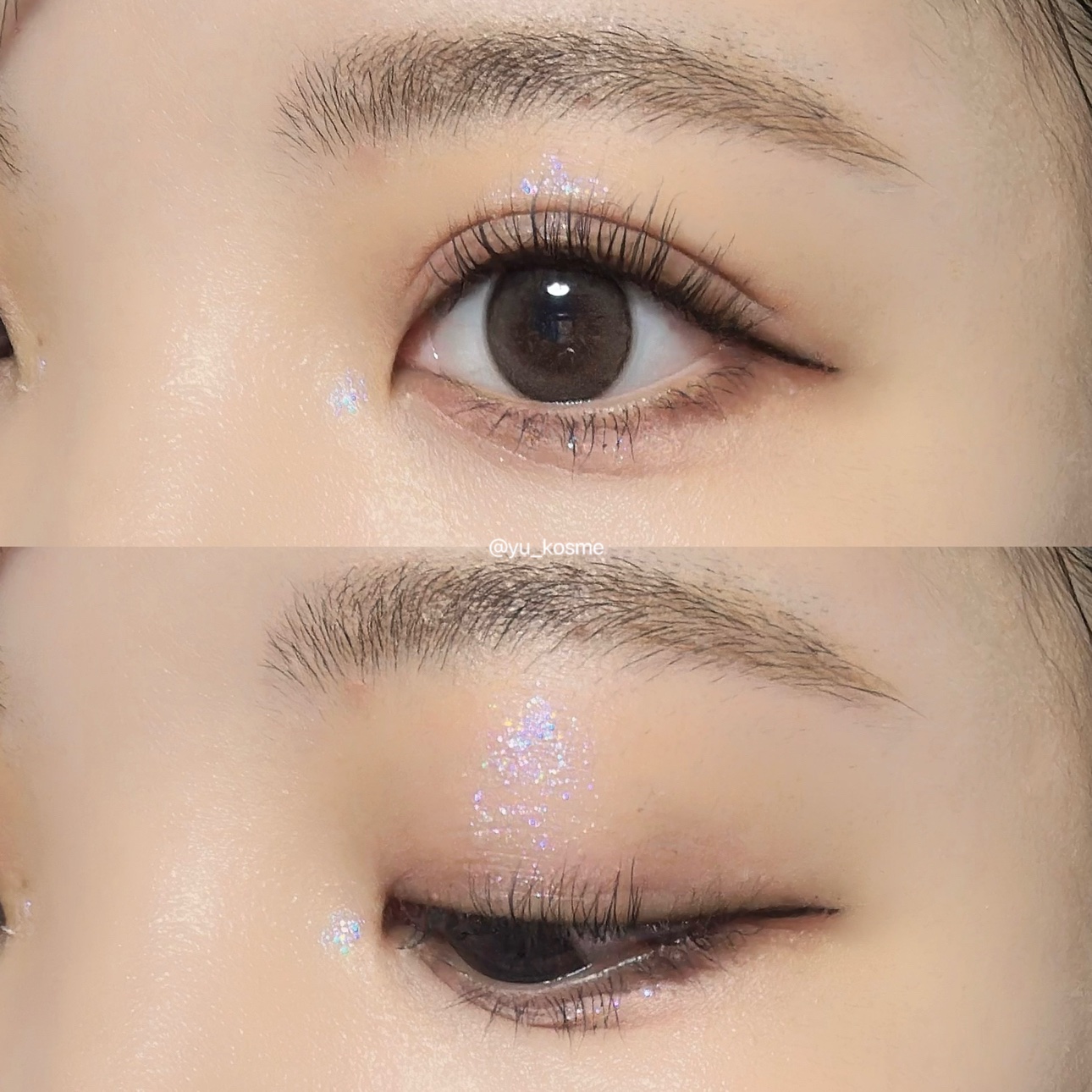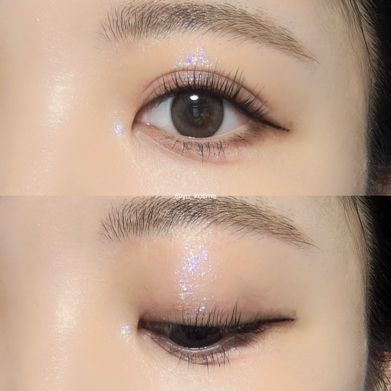華やかで神秘的な雰囲気を演出❣️ ブルーパールの入ったブルベさんにおすすめのグリッター🫰🏻 多色に輝くホロも入ってるけど、小粒だからデイリー使いしやすいです☺︎ 水分量もたっぷりで、ピタッと密着、ラメ飛びもしづらくお気に入りのグリッターです❤️🔥