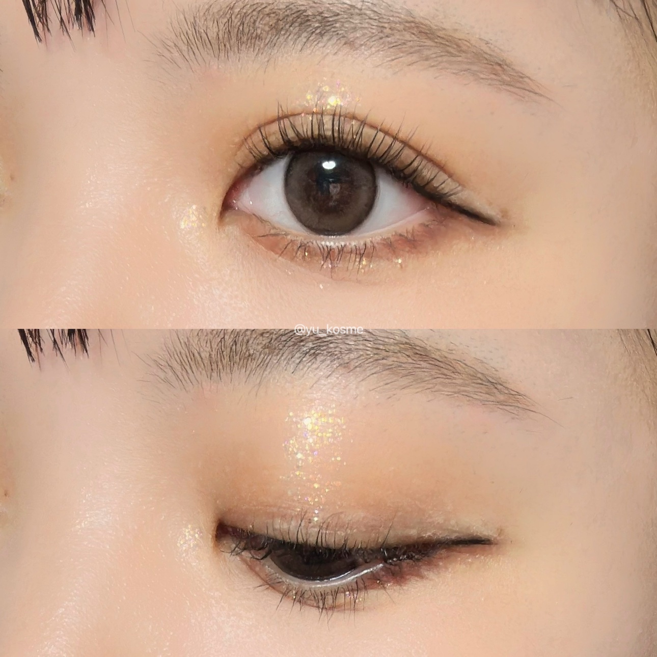 目元をきらっきらに彩ってくれるglowのグリッター🫧 宝石を砕いたみたいにきらきらで、存在感が出ます❤️🔥 涙袋に入れるときゅるんきゅるんに見えて可愛い🐰 先が尖ったシリコンチップで直で点置きできるから便利です。 水分たっぷりのテクスチャーで、密着力も高くラメ飛びもしにくかったし、長時間経ってもメイクしたての状態が続きました!