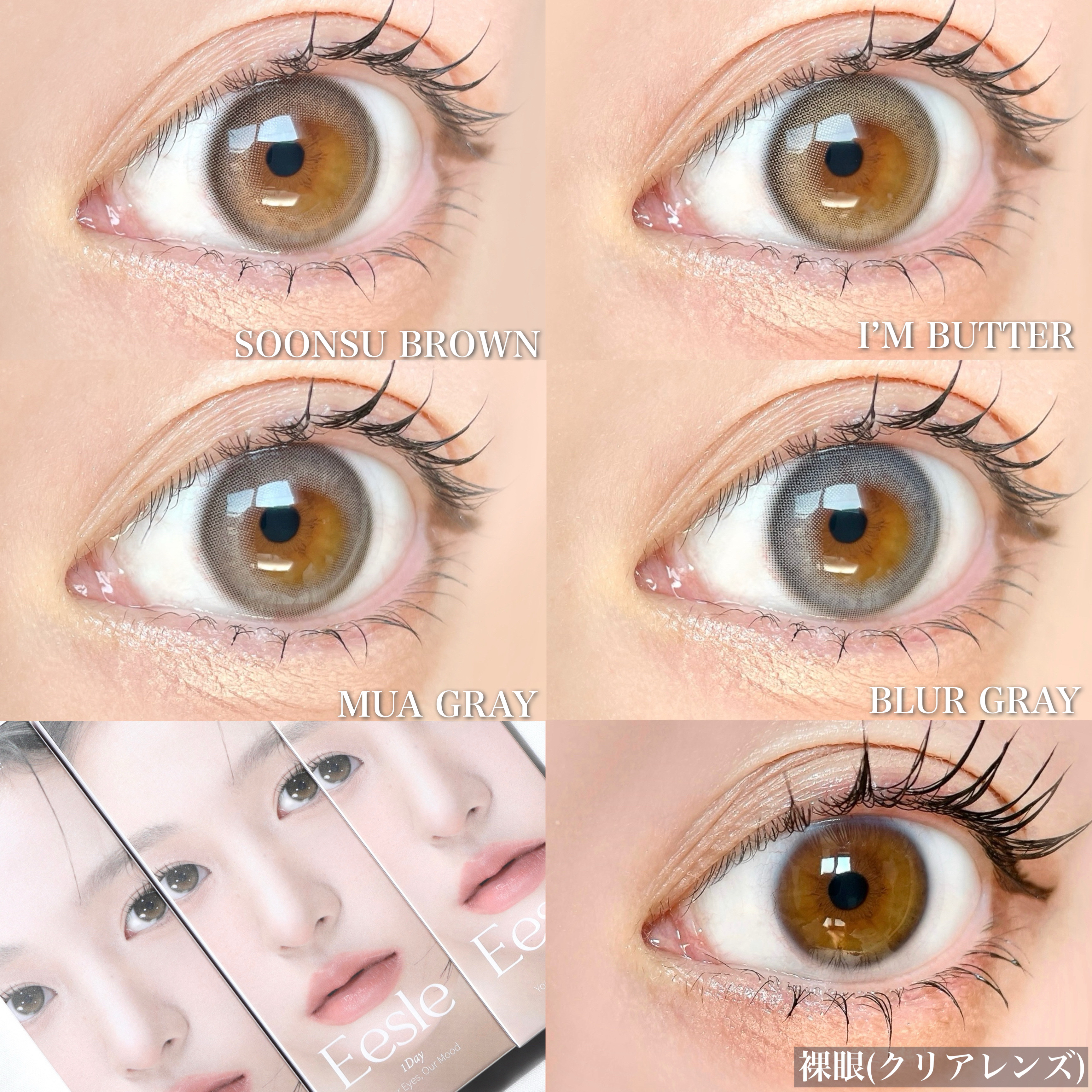 URIAi-DOLから新作透明感レンズ登場˖࣪⊹Eesle1day全色レビューtobibiです!大人気のユリアアイドルからうるっと盛れる新作Eesle(イスル)シリーズが新発売✨今回は全色レビューしていきたいと思います!┈┈┈┈┈┈┈┈┈┈┈┈┈┈┈┈┈┈┈┈URIAi-DOL/Eesle1dayDIA:14.2mm着色直径:13.3mmBC:8.6mmWater:38.5%使用期間:1day新作Eesleシリーズは水墨画の滲みのように、柔らかく広がるサークルデザインとグラデーションでうるっと盛れる透明感カラコン。水光カラコンよりナチュラルに目に光が入って見えるのでうるっとした瞳になりたい方にぴったりです!目の中でグルグル回っても不自然な印象にならないところも◎カラーは全部で4色展開🫧◾︎SOONSUBROWNスンスブラウン控えめな透明感が心地いいナチュラルなブラウンレンズ。ほんのりオレンジのライトリングデザインでうるっとした瞳に✨デイリー使いしやすいうるっとしたブラウンが可愛すぎる🥺◾︎I’MBUTTERアイムバターほのかな生彩をプラスしてくれるバターのようになめらかで温かみのあるブラウンレンズ。裸眼が明るい茶目の私がつけるとベージュっぽく発色しました!少し黄みのあるカラーで角度によって黄緑っぽくも見えて不思議💫瞳をトーンアップして色素薄めの印象に。◾︎MUAGRAYムアグレー瞳にツヤと立体感をプラスしてくれるライトリングデザインのグレーレンズ。落ち着いた雰囲気のダークグレーで大人っぽい印象に🦢あたたかみのあるベージュのライトリングがうるっとした綺麗な瞳を演出してくれます✨◾︎BLURGRAYブラーグレー自然で洗練された雰囲気になれるほのかな輝きを秘めたグレーカラコン。ムアグレーと似ていますが、ブラーグレーの方が青みのあるグレーです!水の波紋のようなライトリングデザインで透明感たっぷりの瞳に🪞┈┈┈┈┈┈┈┈┈┈┈┈┈┈┈┈┈┈┈┈今回紹介はEesle1dayを全色レビューしました♡今までありそうでなかったライトリングデザインと瞳に馴染みやすい絶妙なオシャレカラーが素敵すぎる🥹✨どのカラーもうるっと綺麗な瞳に見せてくれてお気に入り!特に私が1番お気に入りなのはEesleっぽい透明感たっぷりカラーのブラーグレー🫧自然に目に光が入って見えるので奥目さんや水光カラコンが苦手な方にもオススメです☺️ぜひチェックしてみてね〜〜!✨#URIAidol#ユリアアイドル#Eesle#イスル#blurgray#ブラーグレー#カラコン#韓国カラコン#アイドルカラコン#カラコンレポ#カラコン着画#PR