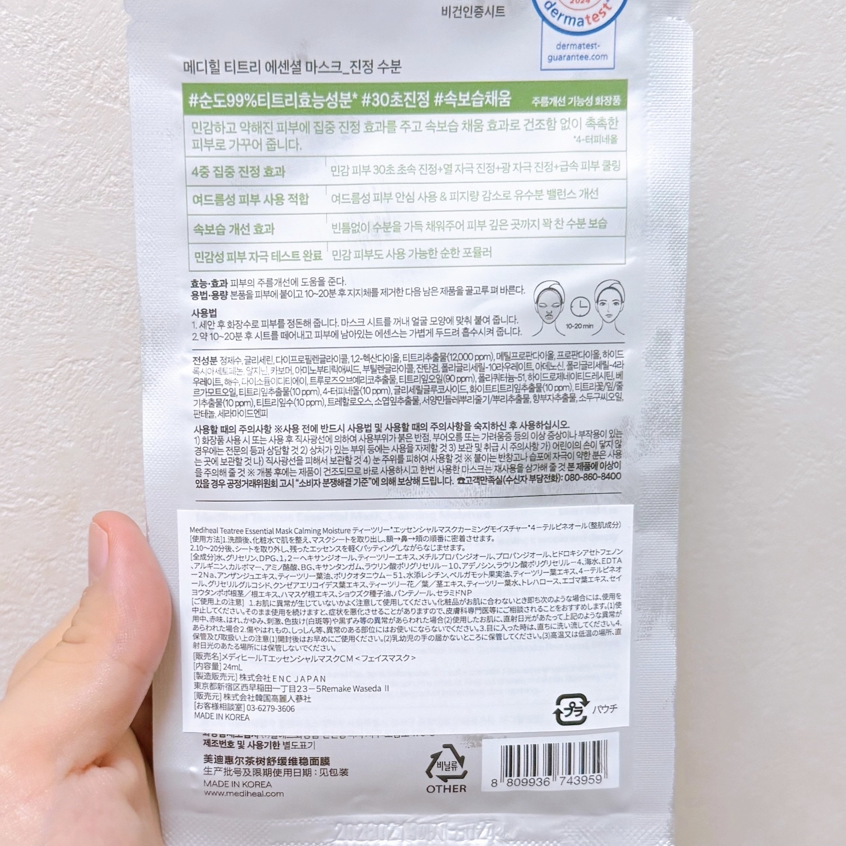 MEDIHEALティーツリーエッセンシャルマスクMEDIHEALの肌治安お守りマスク‼️リニューアルした商品が使用感も使った後も感動レベルの良さ✨MEDIHEALのパックって昔から有名だけどリニューアル後のパック使ったことない人はぜひ改めて使ってみてほしい🙌今回使ったのはティーツリーエッセンシャルマスク!1枚¥275肌のゆらぎが気になる方に!ニキビができた時におすすめのパック✨油水分のバランスを整えてお肌がうるおう成分"純度99%低分子ティーツリー"配合エッセンスがヒタヒタでたっぷり含んだシート薄くてピタッと密着してくれます!ジェルっぽいエッセンスで肌あたりも優しい香りがティーツリー特有の香り刺激感は感じずに使えます🙆♀️久しぶりに使ったら、パワーアップしてた💗すごい鎮静効果を感じました!もともとメディヒールのティーツリーパック大好きで良く使ってたけど久々に使って感動✨赤みやニキビをしっかり鎮静してくれてお肌が落ち着く!パック後、浸透して肌がひんやりくすみも抜けて明るく見えました🙌パック後、肌表面がジェル美容液でびしゃびしゃだったのにグングン肌内側に浸透してくれます!うるおいを満たしてくれてほんのりもちっとしっとり保湿もしっかりして翌朝まで乾燥知らず!嫌なベタベタ感も重さがなく使いやすい!他、グリセリルグルコシド(うるおいキープ)アンザンジュエキス(保湿、整肌)トレハロース(保湿、保護)肌の表面から角質層まで水分補給してくれる1枚です🌟おすすめ☝️とりあえず肌が荒れて困ったら絶対的安定のティーツリーパックでケア#PR#メディヒール#mediheal#鎮静ケア#ニキビ#ティーツリー#韓国スキンケア#韓国#スキンケア#韓国パック#肌荒れ#韓国_スキンケア#メガ割#Qoo10#Qoo10メガ割#ニキビケア#パック#鎮静#提供