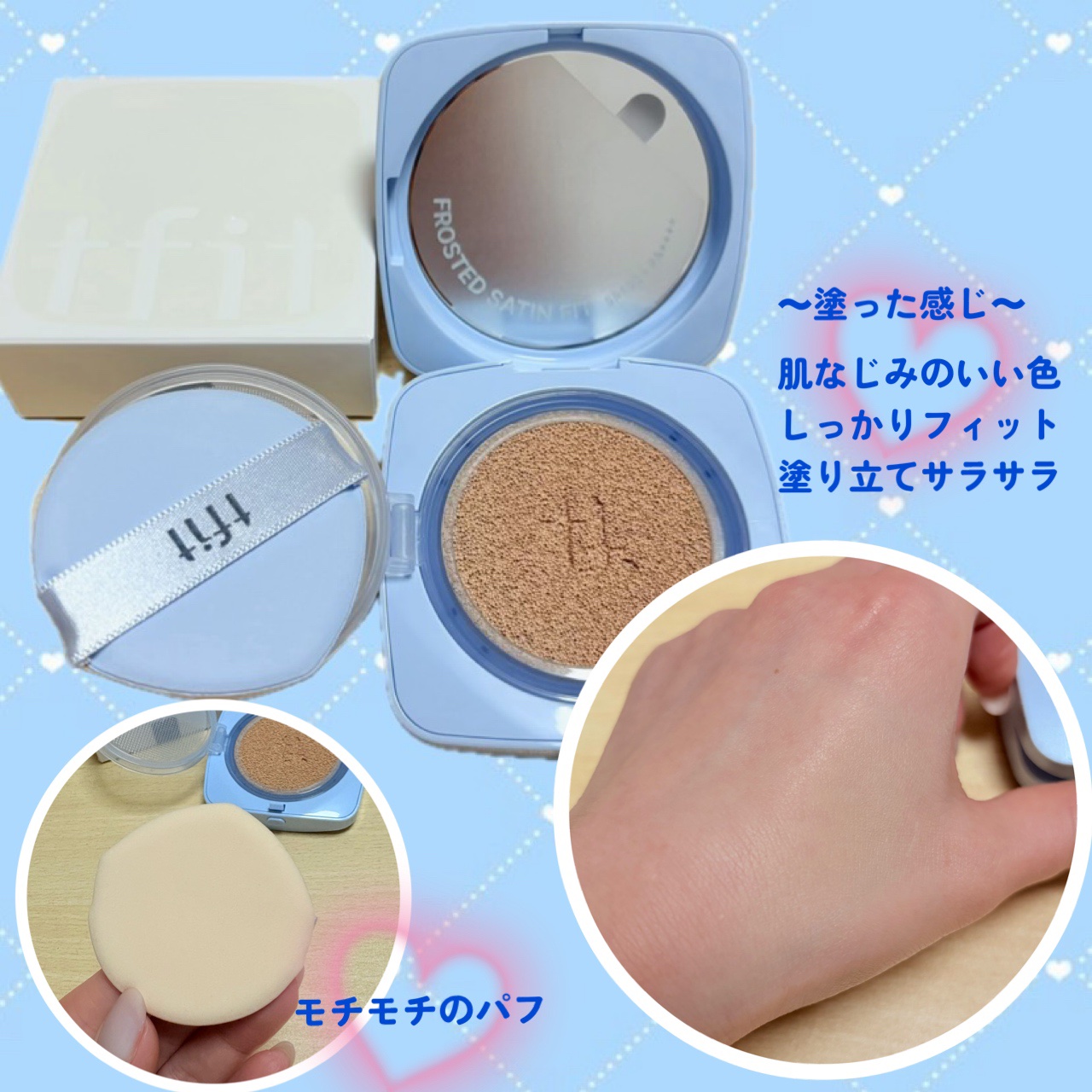 .♡*.大好きTFIT私プライマーやらファンデやらコンシーラーやらTFIT色々愛用中💖そんな今回紹介するのは【アイシークッション】割とナチュラルめなのに気になる赤み、クマ、シミ、ニキビ跡はしっかりとカバーしてくれるの。カバー力が高いものって、付け心地重ためな印象だけど、このクッションファンデは付け心地が軽い☁️そしてツヤ感もほどよくあるのが好き。クッションファンデを塗ってからのキレイの持続性が高くて、塗ってからそれなりに時間がたっても皮脂といい感じに合わさってキレイなの。私このファンデ塗った時、化粧直ししなかったくらいよ😎👍🏻敏感肌:外部刺激に反応しやすい、肌がデリケートな方にもどんな肌タイプの方も使えちゃうからおススメ✨〈購入可能な販売先〉オンライン:Qoo10/Amazon/楽天/LOFTONLINESHOP/PLAZAONLINESHOP/@COSMEONLINESHオフライン:LOFT/PLAZA/ハンズ/@COSME/ドン・キホーテ/マツモトキヨシ/その他バラエティショップを中心に展開※一部取り扱いのないお店もございますので、お近くのお店にお問い合わせください。<類似品に関する内容>オンラインの場合、TFITの商品が海外によく知られているため、類似品が販売されています。*TFIT公式ストア(Qoo10/Amazon/楽天市場)*TFIT公式代理店(代理店の場合、詳細ページに公式認証バナーがある場合のみ公式代理店です。)上の2ヶ所でのみTFITの正規品販売となります。実際に見てもロゴの傾きが少し違う程度なので偽物を区別することが難しいです。気になる人は記載されてるこちらで購入してねぇ〜っ🙌🏻@tfit.japan#PR--#TFIT#TFITクッション#tfitアイシークッション#tfitアイシーシリーズ#コスメ#コスメ部#コスメマニア#コスメ紹介#ファンデーション#クッションファンデ