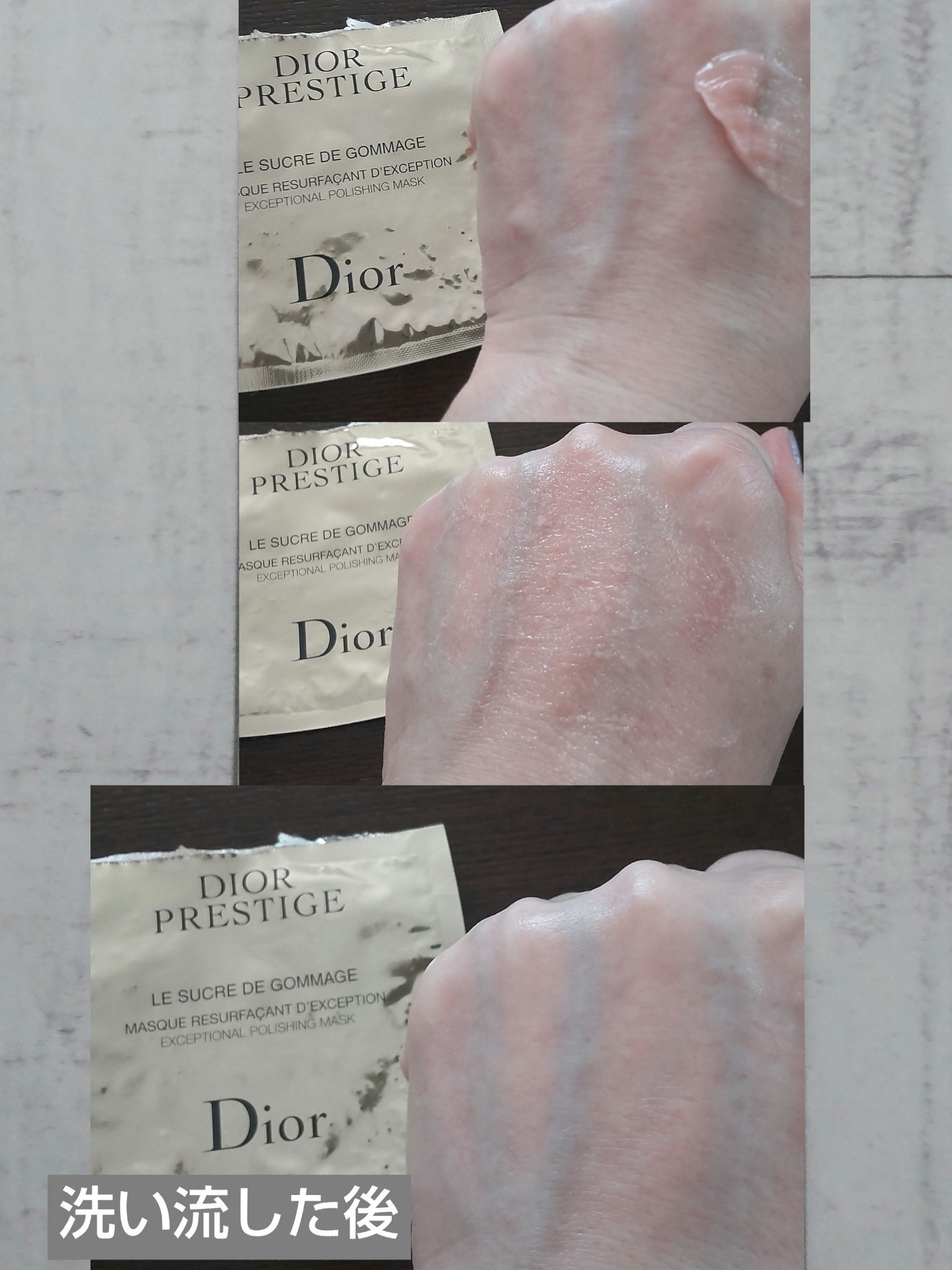 💎Dior プレステージルゴマージュ💎サンプルです。【使用感】顔に馴染ませると、はじめはザラザラしているけどなめらかになる瞬間があるので、そうしたら洗い流します。ゴマージュ後は、もっちりつやっとなりました✨香りはバラのようなゴージャスな香りで...