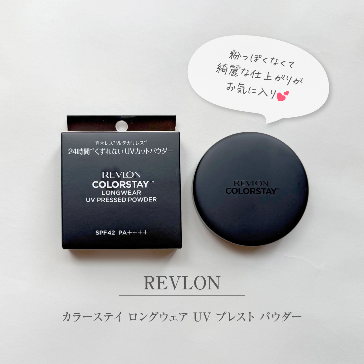REVLONレブロンカラーステイロングウェアUVプレストパウダー粉質がしっとりしていて細かく薄膜に仕上がります。重ね付けしても白浮きもせずにほんのりトーンアップ✨肌にピタッと密着してくれるよ!乾燥肌ですが、このパウダーは本当に乾燥しにくいので...