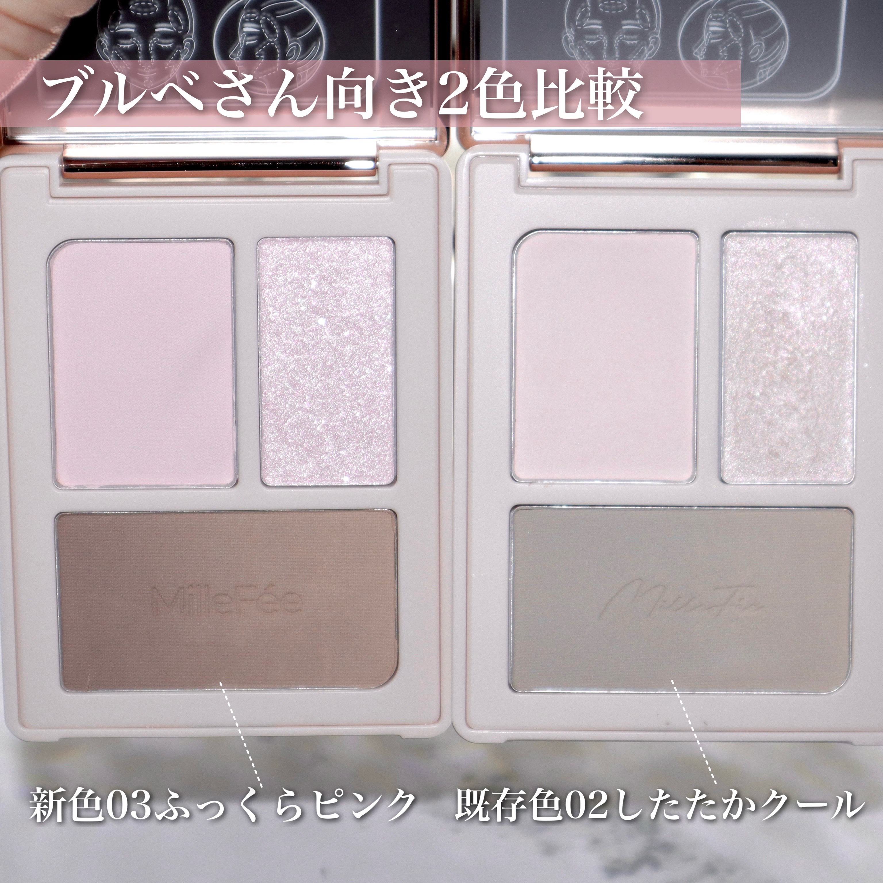 【バブみ新色👶🏻待望のニュートラルカラー出たよ!】#MilleFée#チート顔コントゥアパレット全4色整形級の立体感*¹を演出するマルチパレットにニュートラル向けの新色が仲間入りしました🎀﹍﹍﹍﹍﹍■03ふっくらピンク・マットハイライト(左上...