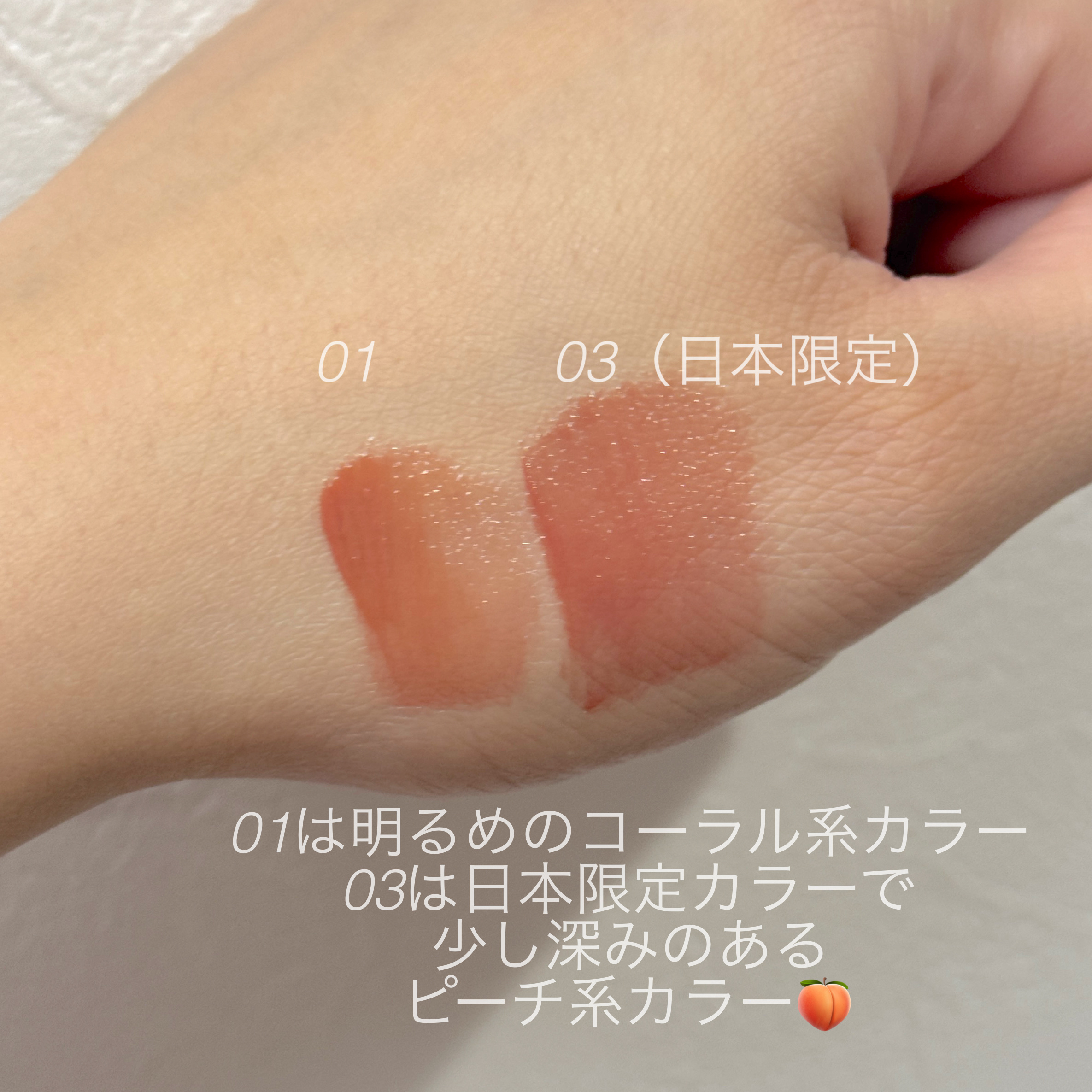 【使った商品】NAMING.ネーミンググロウハートリップティント0102日本限定色03日本限定色04【色味】光沢あり艶【色もち】良いティッシュオフしても色が残っている【質感】ベタつきなく軽いつけ心地【保湿】有ナチュラルに発色して長続きする水光...