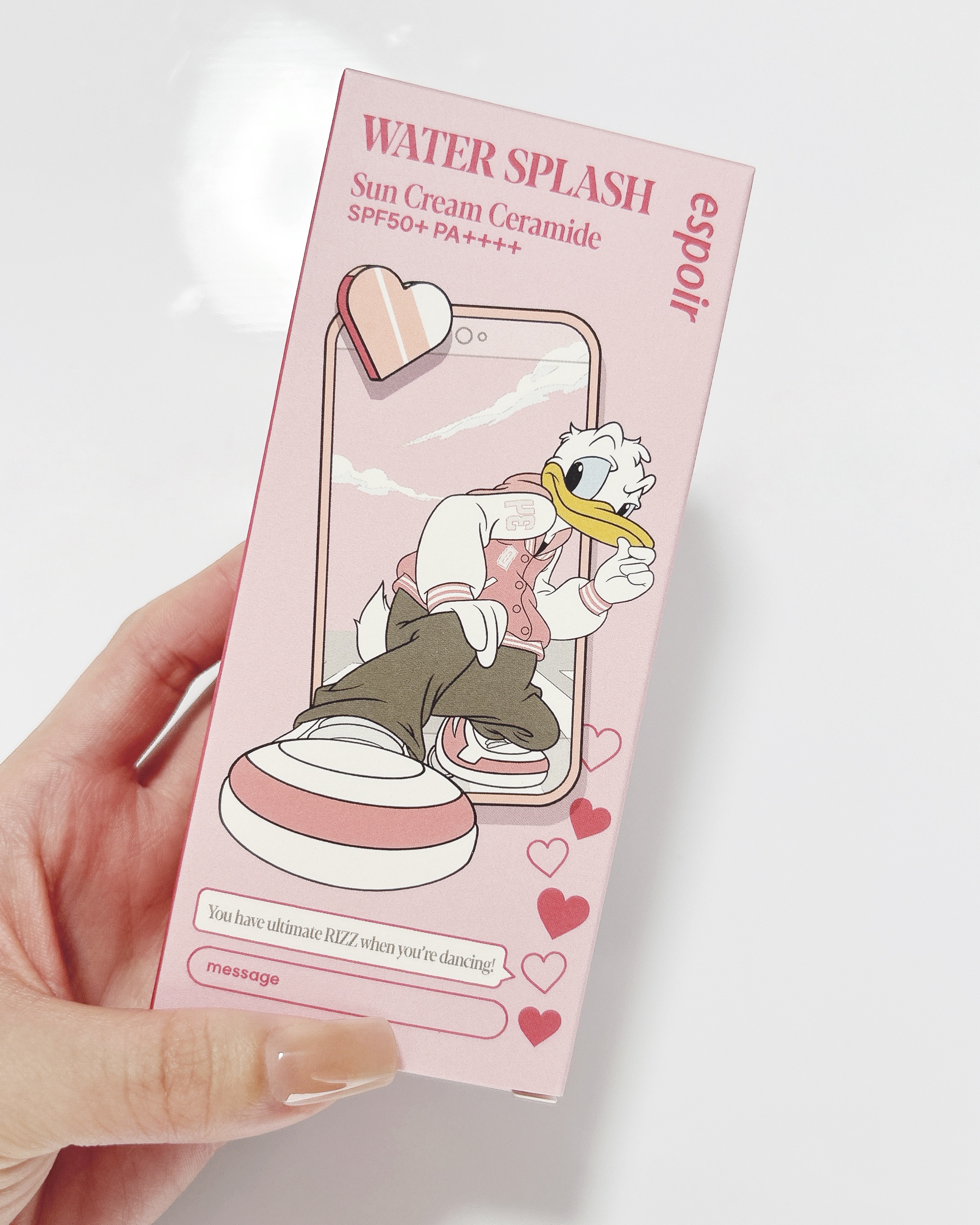 espoir🛟ウォータースプラッシュサンクリームセラミドSPF50+/PA++++/混合系プレキャンでいただいたエスポアの日焼け止めドナのパッケージが可愛すぎて😭💙みずみずしいピンク色のクリームで、ナチュラルなトーンアップとツヤのある仕上がり✨#espoir#エスポア#日焼け止め#サンクリーム#ディズニー#ドナルド