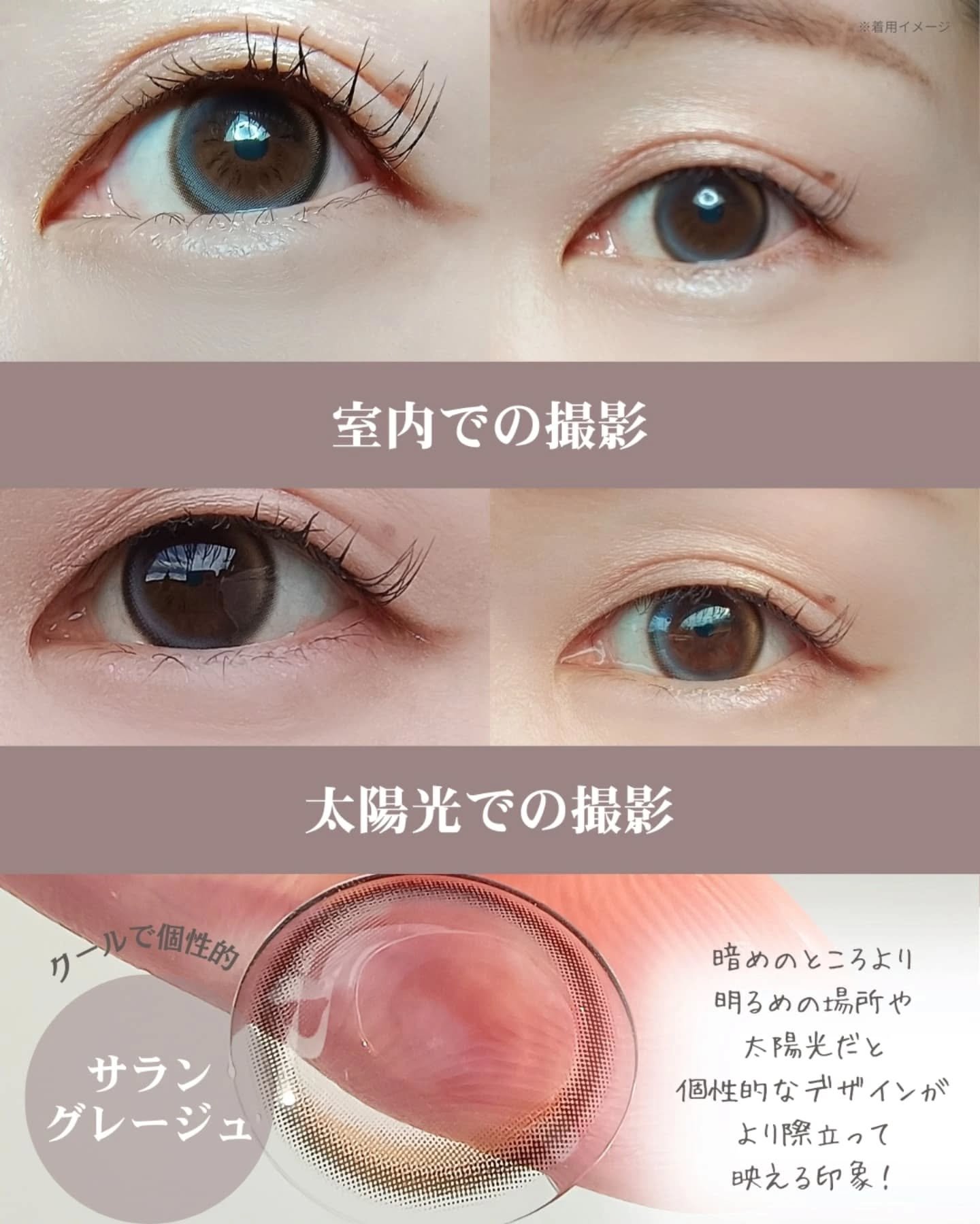- 1day限定カラー。グレーとベージュのハイライトで光りを取り込む新感覚水光レンズ