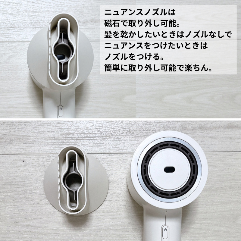フェスティノさまからいただきました🎁ニュアンス速乾を体感✨/🏷️ツヤニュアンスドライヤー髪を乾かすだけでなく、ツヤとニュアンスを残した仕上がりを目指したい方におすすめのドライヤーを試してみました!付属の「ニュアンスノズル」を装着すると、髪との距離を自動で感知しながら温度と風量をコントロールしてくれるから、オーバードライを防ぎつつ柔らかいニュアンスをキープ。ブロー中も熱くなりすぎず、髪のまとまり感を残したままふんわり仕上がるのが嬉しいポイント✍️さらに14箇所から風を送り出すパワフル速乾設計で、風がムラなく均一に当たるから、髪を引っ張ったりドライヤーを振る必要がなくしっかり乾く🌪️髪の量が多い私でも、乾く時間が短くなったと実感でき、時短に大活躍🥹✨仕上がりはしっとりまとまりながらツヤ感が残ってて、毛先のパサつきも抑えられた感じがする!!さらにコンパクトでスタイリッシュなデザインで、洗面所に置いていても生活感が出ず、おしゃれに使えるのが嬉しいポイント💓#ガチモニター_フェスティノ