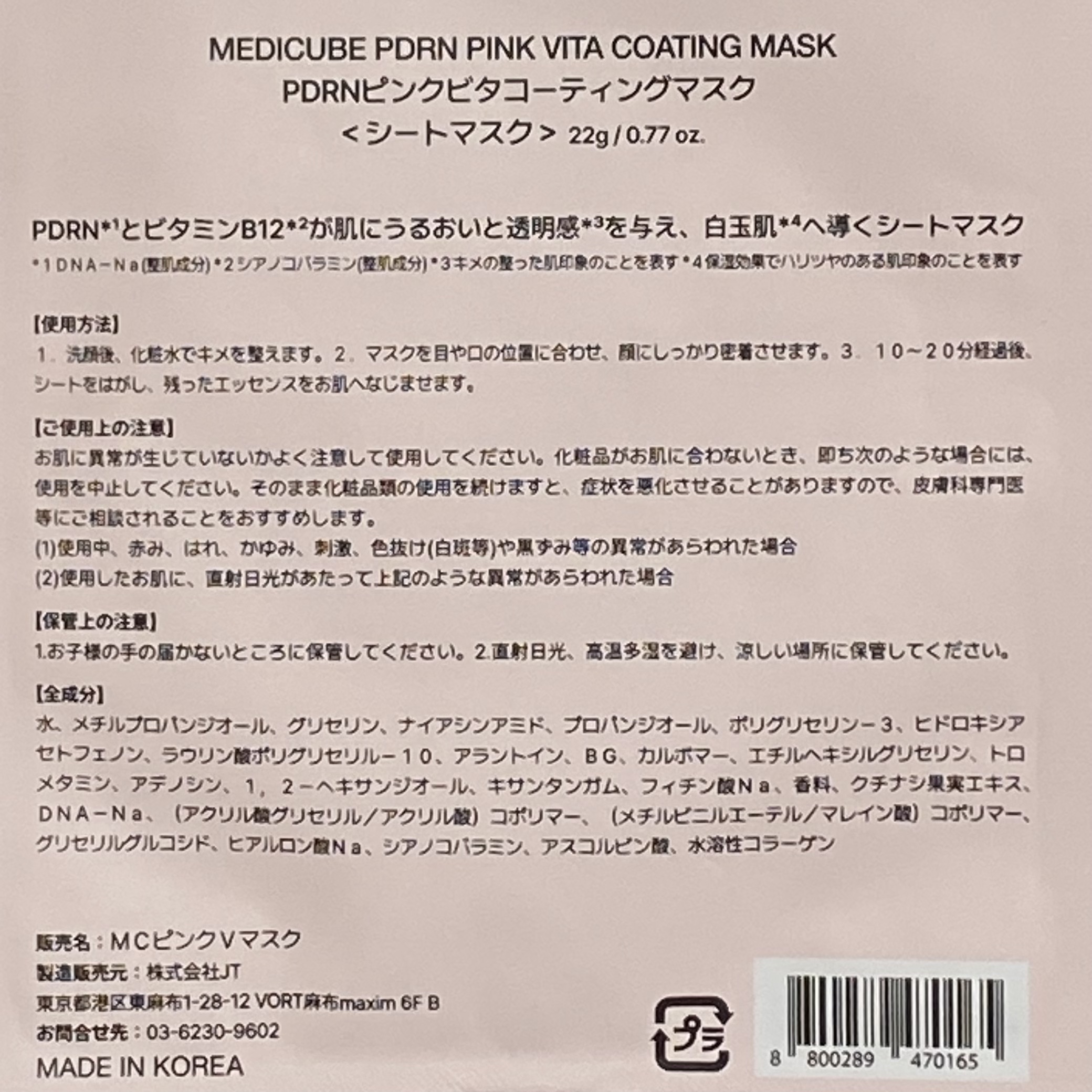 関連する記事MEDICUBE(メディキューブ) PDRNピンクビタコーティングマスク 1枚(22g)