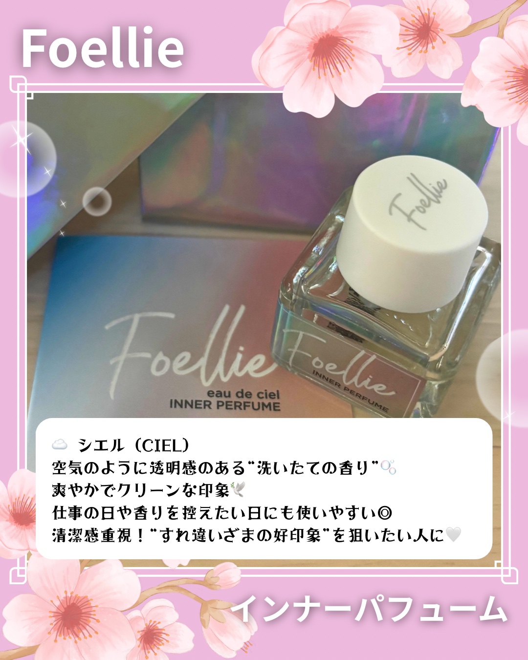 🐻“ふわっと香って内側からいい香りの魔法🫧”♡Foellie//インナーパフューム(チェリーブロッサム/シエル)✿✿密かに推してる“インナー用パフューム”🫶ほんの1滴で長く優しく香ってすれ違いざまにふわっと残る“清潔感のある香り”が本当に可...