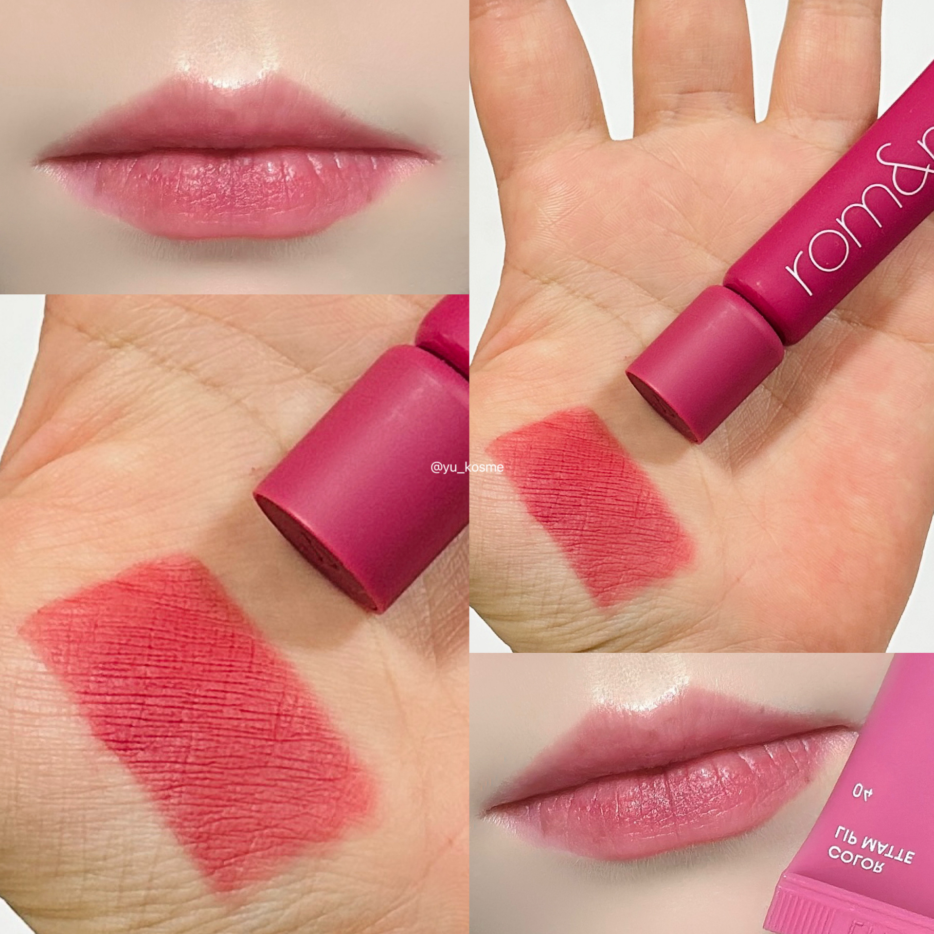 ロムアンド新作チューブタイプのふわふわマットリップ💗☁️新作✨カラーマットリップとザジューシーラスティングの組み合わせをご紹介💕ブランドピックのセットだよ!✦rom&ndカラーマットリップ【新作】00リップマット04オールドチェリーザジューシ...