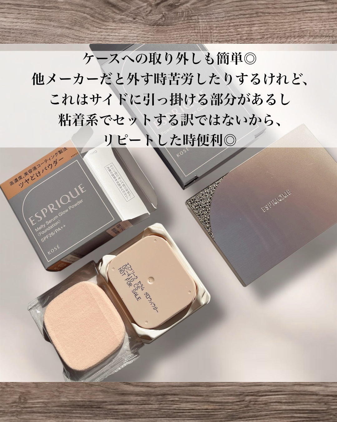 粉だけど粉じゃない?!/⚠️パウダーファンデの概念が覆る⚠️まぢでこれヤバい。感動した。.❁.。.:*:.。.✽.。.:*:.。.❁.。.:*:.。.✽.。.:*:.ESPRIQUEエスプリークメルティセラムグロウパウダー【OC-410】.❁.。.:*:.。.✽.。.:*:.。.❁.。.:*:.。.✽.。.:*:.この処方がバズりやすいの納得!粉体一粒一粒に美容液がコーティングされているからパサパサとは無縁◎普段私は21号使う事が多いんだけど、【OC-410】はワントーン暗く感じたかな。でも粉質良いから馴染む。下地でいつもよりトーンアップさせて使うと◎ケースへの取り外しも簡単◎他メーカーだと外す時苦労したりするけれど、これはサイドに引っ掛ける部分があるし粘着系でセットする訳ではないから、リピートした時便利◎パウダーファンデってメイク工程減るし、軽くて魅力的だったから今まで色々試してきたけれど、砂漠肌で年齢肌の私だとパサパサしたり、角質に引っかかってうろこみたいになったり、厚塗り感が出てしまって中々上手に塗布出来なかったの。でもこれはめちゃ綺麗に塗布できた!まぢで肌を綺麗に魅せてくれる◎何より嬉しいのがパリパリ乾燥しないし、崩れ(粉吹き)にくい◎ぶっちゃけこのアイテムは私の中で革命が起きるくらい感動した◎ラメとかでは無く美容液由来のじゅわっとした自然な艶が美しいのよ◎割れてシワとかに溜まったりしないし毛穴も綺麗にぼかしてくれるし薄づきでお肌のキメを整えてくれるからまぢでこれは一回試して欲しい。多分2025年の個人的なベスコスに入ると思う。まーぢで感動した。あと付属のパフやブラシ等、色々塗布方法を模索したんだけど、このロージーローザのパフで塗ると飛ぶぞwまぢでヤバいw仕上がりえげつなく綺麗◎心の底からオススメな逸品◎是非チェックしてみてね☑️今回はエスプリーク様のキャンペーンで当選💐メルティセラムグロウパウダー【OC-410】頂きました❤️素敵な機会をありがとうございました🙇♀️#PR#エスプリーク#パウダーファンデInsta@kose_officialX@koseofficial_jp
