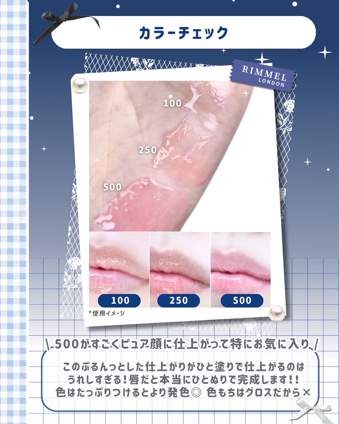 色?香り?星座?楽しく選べるガラスツヤグロス🌟⸝⸝꙳/⠀⠀こんにちは、びーこです🎀𓈒𓏸ㅤ⠀前に投稿したアイライナーと一緒に出ているMAYAJAMA限定コレクション!⠀こちらも夜空のようなミッドナイトブルーのパッケージでよくみるとキャップのところはキラキラします🌃˖࣪⊹⠀⠀3色のカラーと2種の香り。そして12星座が各カラーに振り分けされていていろんな選び方ができるのが楽しい◎⠀⠀少し大きいアプリケーターで唇に人塗りするとぷるんっとガラスのような光沢が🫶🏻⠀グロスだから色もちはそんなに良くないんだけどほんのり色づくカラーがとっても可愛い!だからパーソナルカラー問わずで星座で選ぶのもあり!⠀がっつり色を出したいならティントなどの上に重ねるのが◎⠀⠀私は特に500番が本当に清純なピュアピンクでお気に入りです!!(イメージは本当にお風呂上がり血色が上がった感じ)⠀みんなもチェックしてみてね!⭐︎4の理由は私が唇弱めで3色スウォッチした時に少しピリッとしたからです.݁₊⊹.݁˖.݁౨ৎ.݁₊⊹.݁˖.݁𝗥𝗜𝗠𝗠𝗘𝗟𝗟𝗢𝗡𝗗𝗢𝗡MAYAJAMAグラッシーリップグロス100ウォーター┊なじむクリアピンク250エアー┊パワフルなコーラルオレンジ500アース┊安定の血色ピンク⠀@rimmellondon_jp⠀ㅤㅤㅤㅤ ̄ ̄ ̄ ̄ ̄ ̄ ̄ ̄ ̄ ̄ ̄ ̄ ̄ ̄⠀ㅤㅤㅤㅤㅤㅤㅤㅤ「今日も見てくれてありがとうございました🎀ྀིほぼ毎日コスメトレンドを発信中です!フォロー、保存お待ちしてます🫶🏻𓂃」⠀⠀⠀🏷️𝐭𝐚𝐠⠀⠀#PR#リンメル#RIMMEL#リンメルロンドナー#MAYAJAMA#MAYAJAMAグラッシーリップグロス#グラッシーリップグロス#リップグロス#グロス#グロスおすすめ#プチブラ#プチプラコスメ#ドラコス#星座#七夕