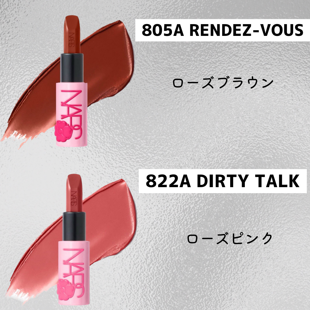 NARSからアジア限定パケ&カラーのリップが登場💄✨ピンクのボディにフローラルモチーフをあしらったロマンチックなパッケージ🌸持ってるだけで気分が上がる😍🙌💞全6色紹介していくよ🫶🏽🌺802ANOSHAMEアプリコットブラウンイエベ秋向け❣️🌺805ARENDEZ-VOUSローズブラウンイエベ秋向け❣️🌺811ASPICEUPウォームベージュイエベ春向け❣️🌺822ADIRTYTALKローズピンクブルベ夏向け❣️🌺833ALOVEGAMEタンローズイエベ春向け❣️🌺869ASCANDALレディッシュクレイブルベ夏向け❣️どれも日常使いしやすくて秋冬メイクにぴったりなカラーだよ🫶🏽パーソナルカラー別に分けたからぜひ参考にしてね✨画像はLIPSよりお借りしました。#夏の保湿ルーティン#NARS新作#秋冬コスメ
