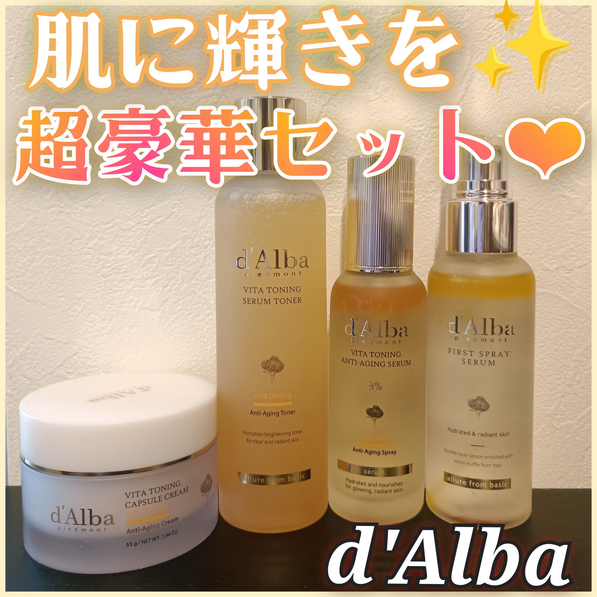 ダルバ(d'Alba)ビタトーニングカプセルクリーム水分がたっぷり詰まったクリームベースにビタミンEKを含んだビタミンカプセルがブレンド。カプセルの粒々が見えるよ。べたつきなく肌になじむ。ダルバの香り大好き勢はあの贅沢気分がクリームでも堪能で...