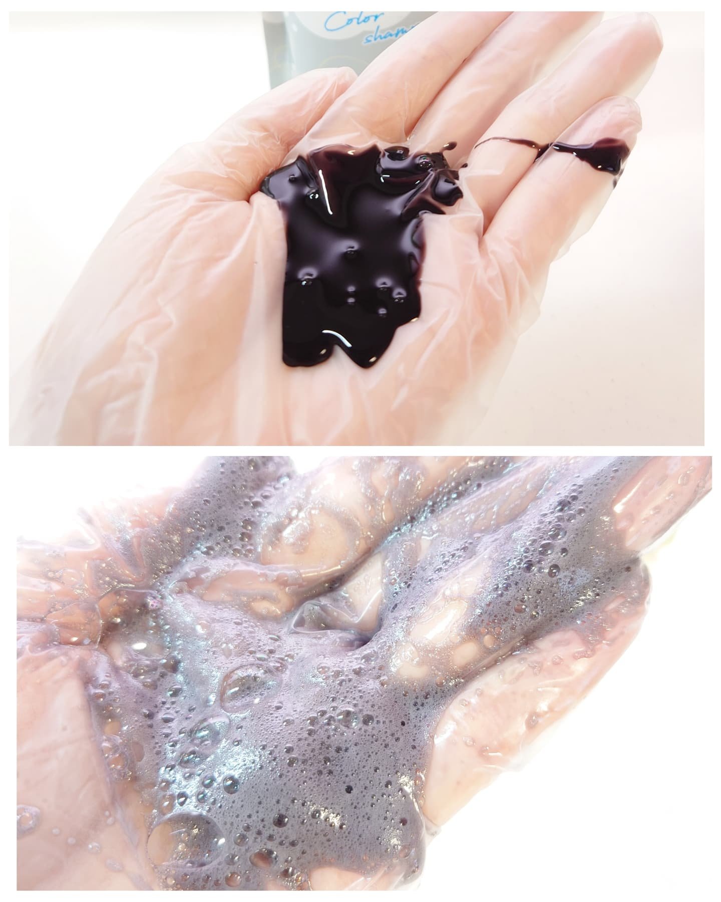- 水、ラウレス硫酸Na、ラウラミドプロピルベタイン、グリセリン、コカミドDEA、ココイルメチルタウリンNa、加水分解ケラチン(羊毛)、加水分解シルク、加水分解コラーゲン、γ-ドコサラクトン、液状ラノリン、(加水分解シルク/PGプロビルメチルシランジオール)クロスポリマー、アルガニアスピノサ核油、シア脂、ハチミツ、トコフェロール、フィトステロールズ、クエン酸、ジオレイン酸PEG-120メチルグルコース、BG、ポリクオタニウムー10、ポリクオタニウムー7、ベへントリモ二ウムクロリド、ジステアリルジモニウムクロリド、プロパンジオール、塩化Na、インプロパノール、エタノール、EDTA-2Na、安息香酸Na、フェノキシエタノール、香料、(+/-)塩基性青99、塩基性茶16、塩基性赤76、塩基性紫2、HC青2