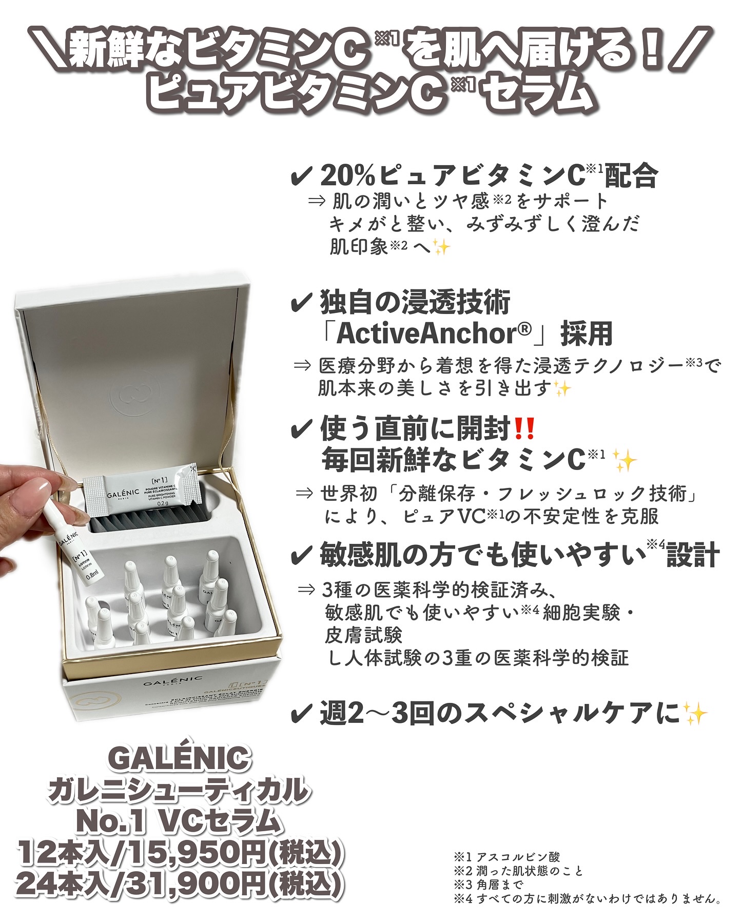 フランス発🇫🇷スキンケアブランド《GALÉNIC》日本上陸✨▶︎ガレニシューティカルNo.1VCセラム****世界売上No.1*✨高級ピュアビタミンC*²美容液♡1本でうるおいとツヤのWケア透明感*¹あふれる肌へ🫧世界初「分離保存・フレッシュ...