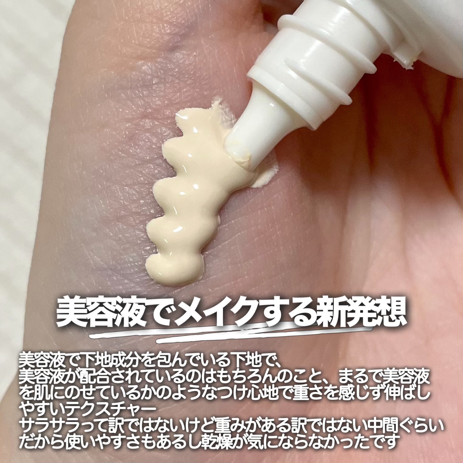 美容液で包んだ下地!?/MAQuillAGEエッセンスベースEX美容液で補正パウダーなどの下地成分を包んでいてまるで美容液を塗ったかのような肌に重さを感じない使用感♥サラサラでもなく重い訳でもなく!サラサラと重さの中間ぐらいのテクスチャー伸ばしやすくて肌のムラや毛穴を整えてくれるからなんだかんだで手に取ってしまう🤦♀️メイクを軽く済ませたい時はこの下地とパウダーで終わらせちゃうことも♪さすがMAQuillAGEだと思うし使うと安心感と安定感があります笑知らなかったのですが、2025年下半期ベストヒットコスメで3位を受賞していたようで使ってみると納得の使用感でした🙌#マキアージュ#エッセンスベースex#ミドルコスメ#美容液下地