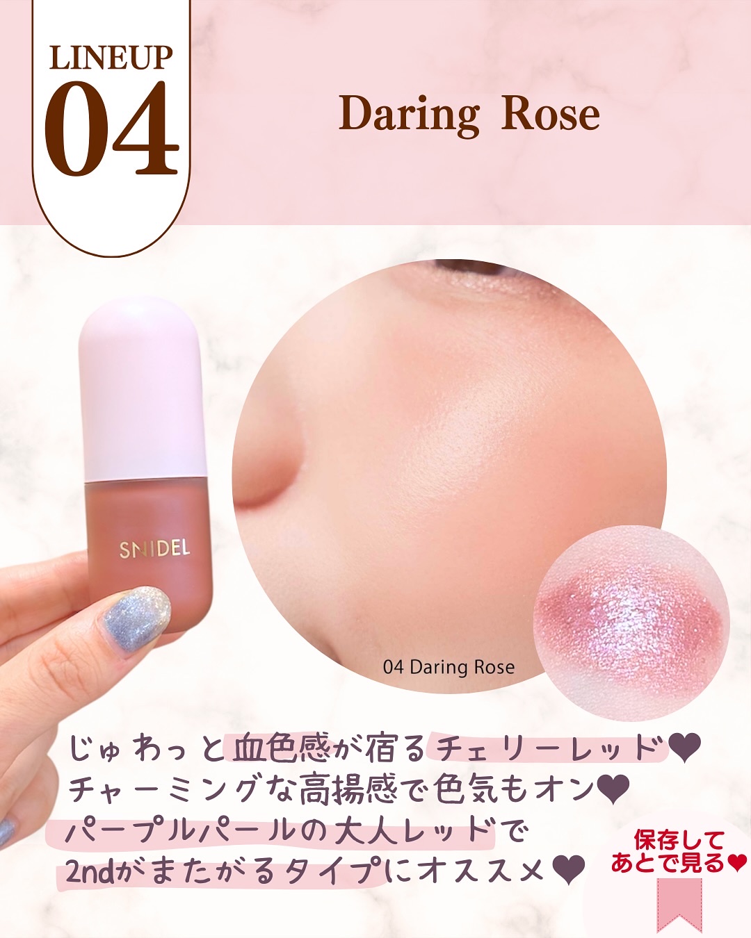 SNIDELを顔に宿す女は100%可愛い🩷あゆみみです🩷パーソナルカラーやコスメの耳より👂🏻な情報を16タイプ・パーソナルカラーアナリスト®のプロの視点からご紹介していきます!...本日は【オススメ品紹介SNIDELフラッフィーブラッシュ】についてお話ししていきます🌸✼••┈┈••✼••┈┈••✼••┈┈••✼••┈┈••✼《#SNIDEL#フラッフィーブラッシュ》全4種/各¥3,300(税込)✼••┈┈••✼••┈┈••✼••┈┈••✼••┈┈••✼大人女子はチーク苦手さんが多くてチークをしないという方がサロンのお客さまでも多い印象……ですが、それはもったいない❣️大人女子はチークをすると華やかになりかなり若見えします🥰✼••┈┈••✼••┈┈••✼••┈┈••✼••┈┈••✼そして7つのフリー成分なのが肌弱さんにとっても嬉しいポイント✨️︎︎︎︎☑︎︎︎︎︎紫外線吸収剤フリー☑︎合成香料フリー︎︎︎︎☑︎パラベンフリー︎︎︎︎☑︎動物由来成分フリー︎︎︎︎☑︎鉱物油フリー︎︎︎︎☑︎ナノ粒子フリー︎︎︎︎☑︎アルコールフリー✼••┈┈••✼••┈┈••✼••┈┈••✼••┈┈••✼【01RefinedPink】ちゅるんとふっくら色めくベビーピンク❤︎ブルベ夏🩵・ブルベ冬🩷にオススメ❤︎【02RelaxyCoral】じんわりと幸せがにじみ出るやわらかい発色のロージーコーラル❤︎ブルベ夏🩵・イエべ秋🤎にオススメ❤︎【03OwnIntention】シアーなゴールドパールがつやめくデューイベージュ❤︎イエべ秋🤎にオススメ❤︎【04DaringRose】じゅわっと血色感が宿るチェリーレッド❤︎イエべ秋🤎・ブルベ冬🩷にオススメ❤︎✼••┈┈••✼••┈┈••✼••┈┈••✼••┈┈••✼フォローして他の投稿も見てみてください🩷@ayumimi_color👈🏻✼••┈┈••✼••┈┈••✼••┈┈••✼••┈┈••✼ラピスの16タイプカラーメソッド®に基づくアナリストの個人の見解です...長野駅周辺で16タイプ・パーソナルカラー診断ができます🌈ご予約・詳細はハイライトをご覧ください📱✨️#スナイデル#snidel#チーク#リキッドチーク#オーガニックコスメ#ナチュラルコスメ#コスメ紹介#パーソナルカラー#ブルベ#イエベ#イエベ春#ブルベ夏#イエべ秋#ブルベ冬