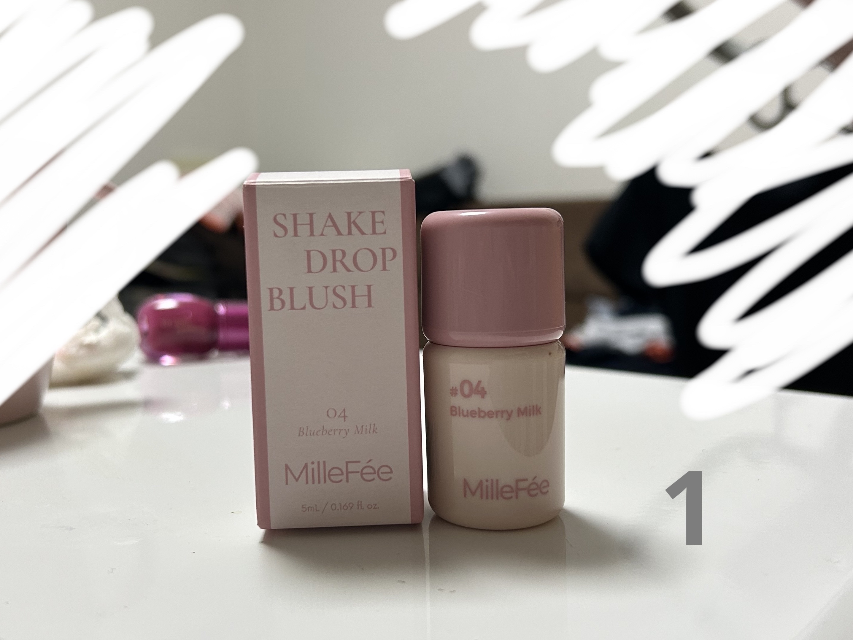 新しいコスメ試してみた。MilleFéeシェイクドロップチーク04ブルーベリーミルク編☆MilleFéeシェイクドロップチーク04ブルーベリーミルク¥1,650○香り・無し。○色・青みを感じる濃いめのミルキーピンク。・セミマットな発色。○容量、パッケージ・5ml・高さ6.5cm直径3cm・蓋、本体ともにプラスチック製。・太めのもけもけチップ内蔵。・中に硬いボールが入っていて振ると音がする。○テクスチャー・水のようなさらっとした液体。・リキッドチーク。○特徴・4種類のカラー展開。・太めのチップが内蔵されていて便利。・伸ばすとベタつかない。・ふんわり発色。・肌に乗せてから早く乾き過ぎないのでムラにならず綺麗にぼかせる。○まとめ・ふんわり発色がナチュラルでかわいい。・パッケージがシンプルな形で使いやすい。・不透明のパッケージで残量が分かり辛い。・指で綺麗にムラなくぼかせるので不器用な人でも使いやすい。・チップが太めでチークに乗せる時1回点置きするだけでいいから時短。・時短で綺麗が目標の人にぴったり。・薄付きでどの色を選んでも失敗は少なそう。・おまけで小さめで厚みのあるパフがもらえた。まだ使用してないけど使いやすそう。