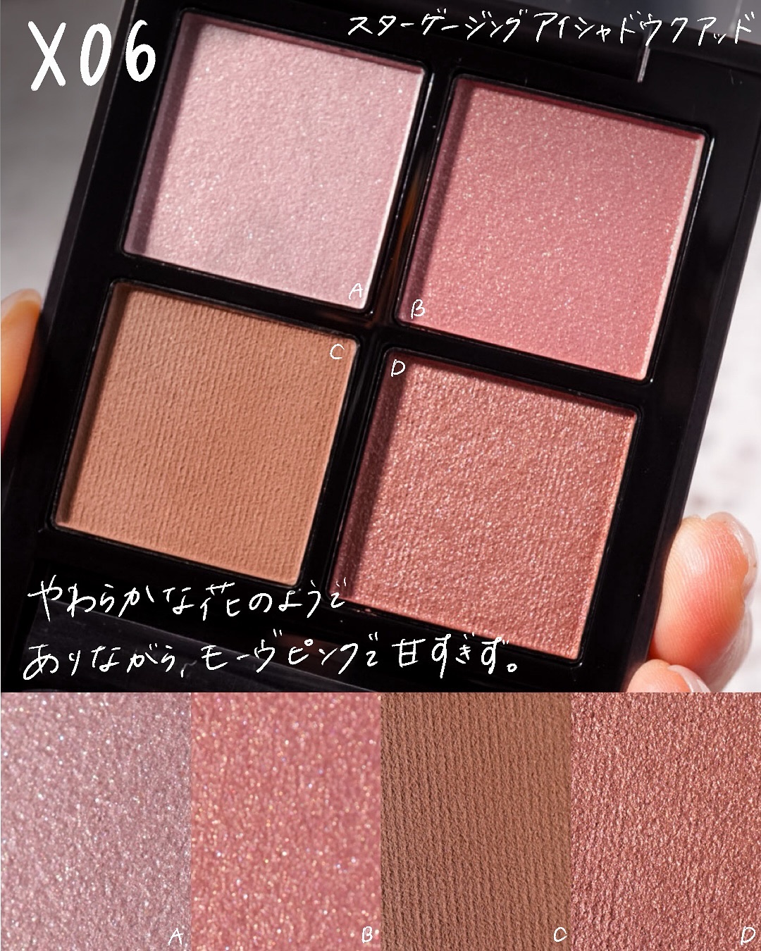 - ゴールドやパープルなど多彩なパールが華やかさを生むペタルピンク。