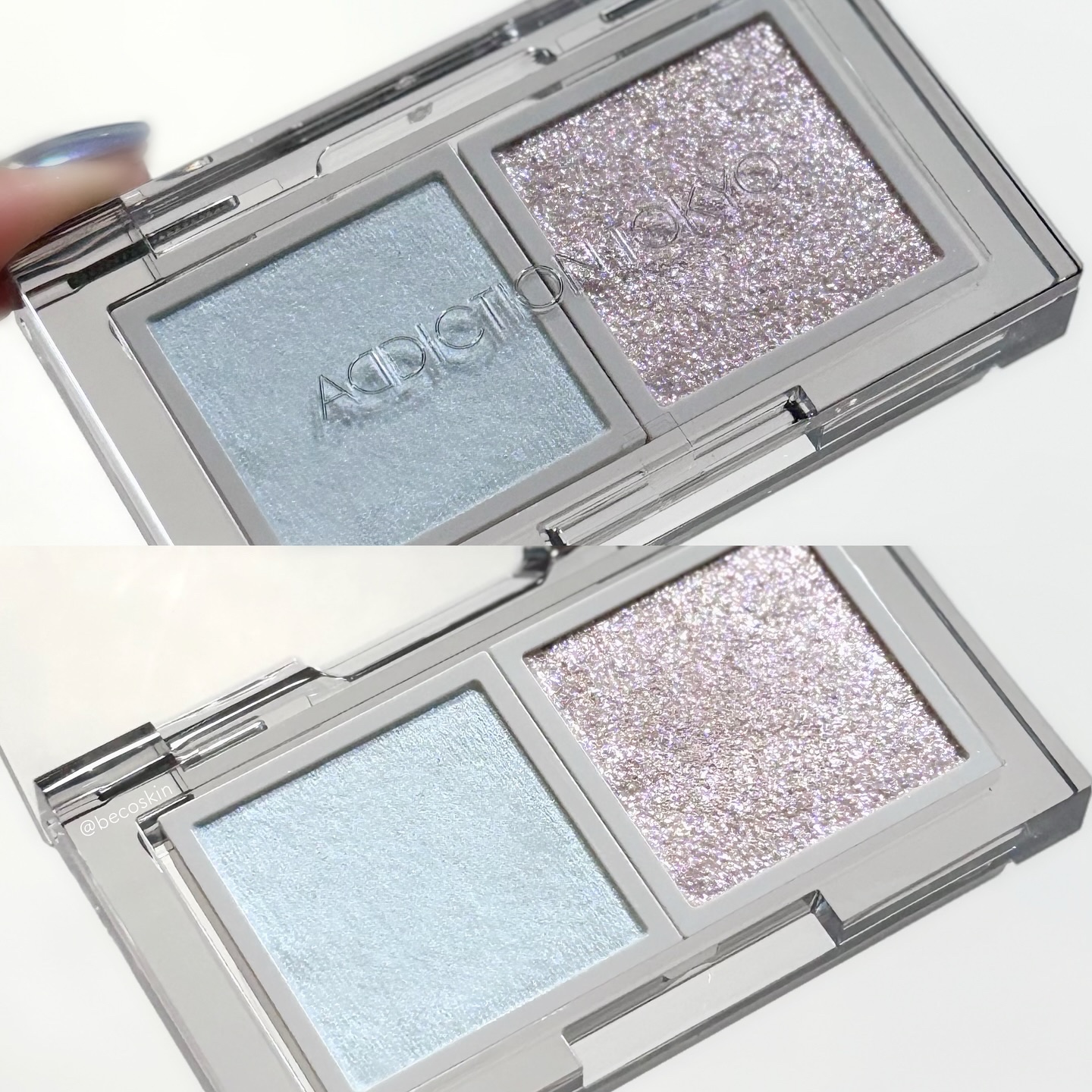 アディクションさまからいただきました8/1発売のアディクションの新シングルシャドウ!005N🩵CrispySky003SP🩷Buzzyyy色の組み合わせとテクスチャーの違いが楽しいよ…!🥹キラキラで涼しげなこの提案色名は【Pure】だって✨可...