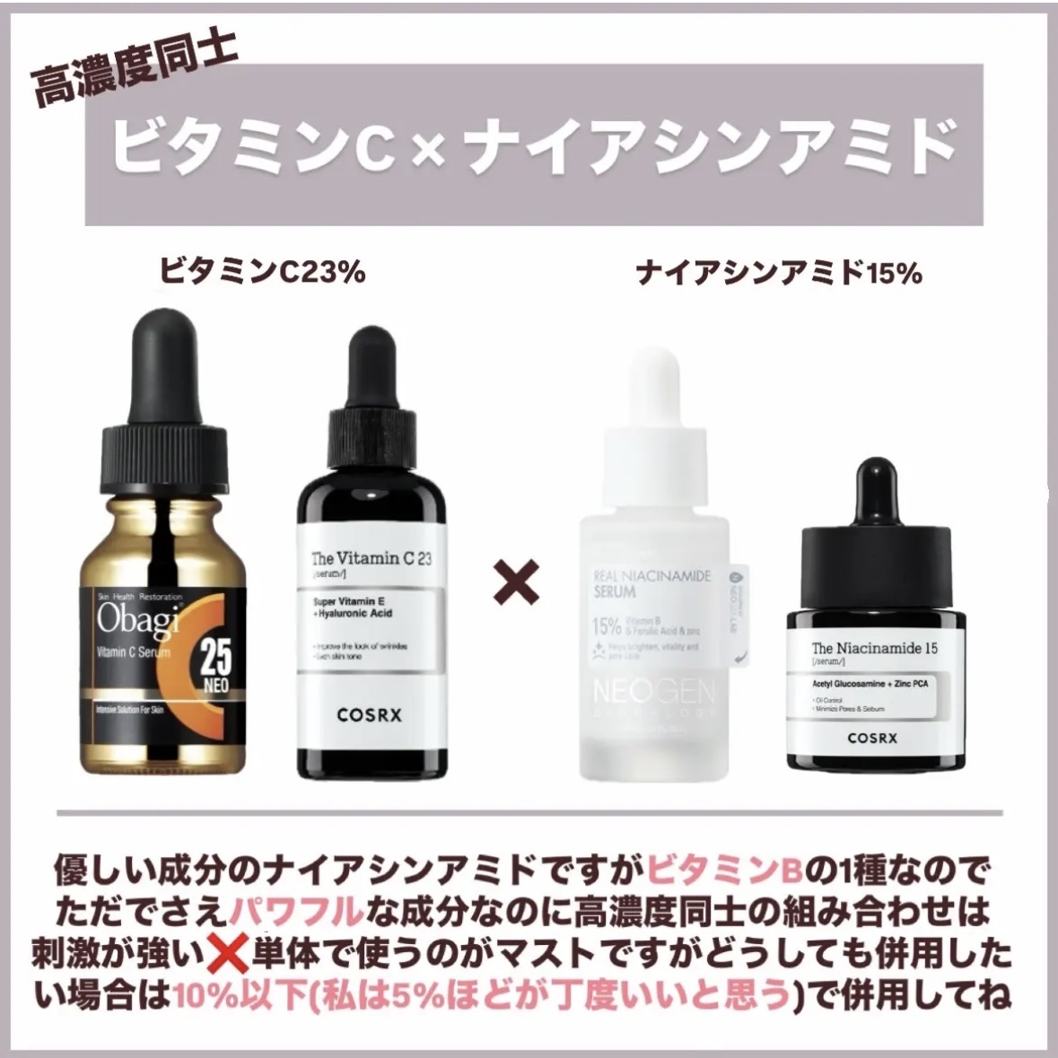 併用NG⁉️実は推奨しないスキンケア成分の組み合わせ‼️ルールを守って正しく美肌🌟皆様こんにちは、んーです🐰今回は併用に気をつけてNGスキンケア成分の組み合わせについて紹介します🌟美肌を保つためには大切な成分たちですが、濃度や相性が悪いと逆に汚肌になってしまうので気をつけてください🥲分かりやすいのは濃度!単に高濃度がいい訳では無いので適切な濃度の商品を使ってくださいね🥹最後までご覧いただきありがとうございます🐰質問等はコメントにて💬#スキンケア#スキンケア成分#成分#併用#併用成分#スキンケア併用#レチノール#ビタミンc#ピュアビタミンC#ビタミンa#ピーリング#肌荒れ#肌荒れ予防#肌荒れ防止#敏感肌#乾燥肌#インナードライ#インナードライ肌