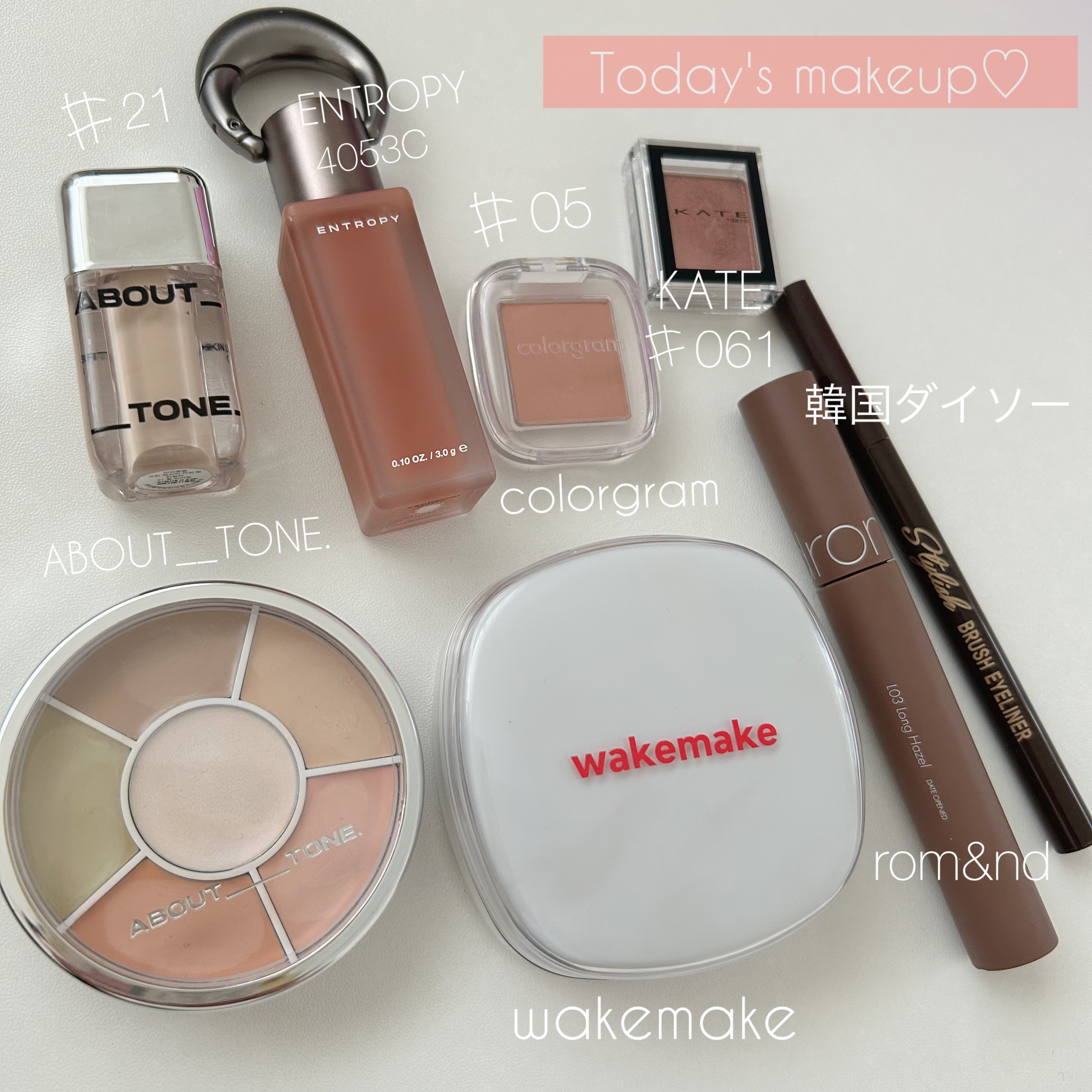 今日のメイク💋ENTROPYのリップ使いたくて考えたよ目元はいつもと一緒です←一生気に入ってる組み合わせ♥♥韓国ダイソーのアイライナーは濃すぎないブラウンで細く描けるし200円か300円でこれはいい😮💨チークもENTROPYで統一感🧱ABOUTTONEのコンシーラー仕込んだからハイライトはなし🤝肌明るく見えていい感じパウダーの写真忘れたけどByurのパール✨やっぱすきだわ🫶#プチプラコスメ#韓国ダイソー#韓国コスメ