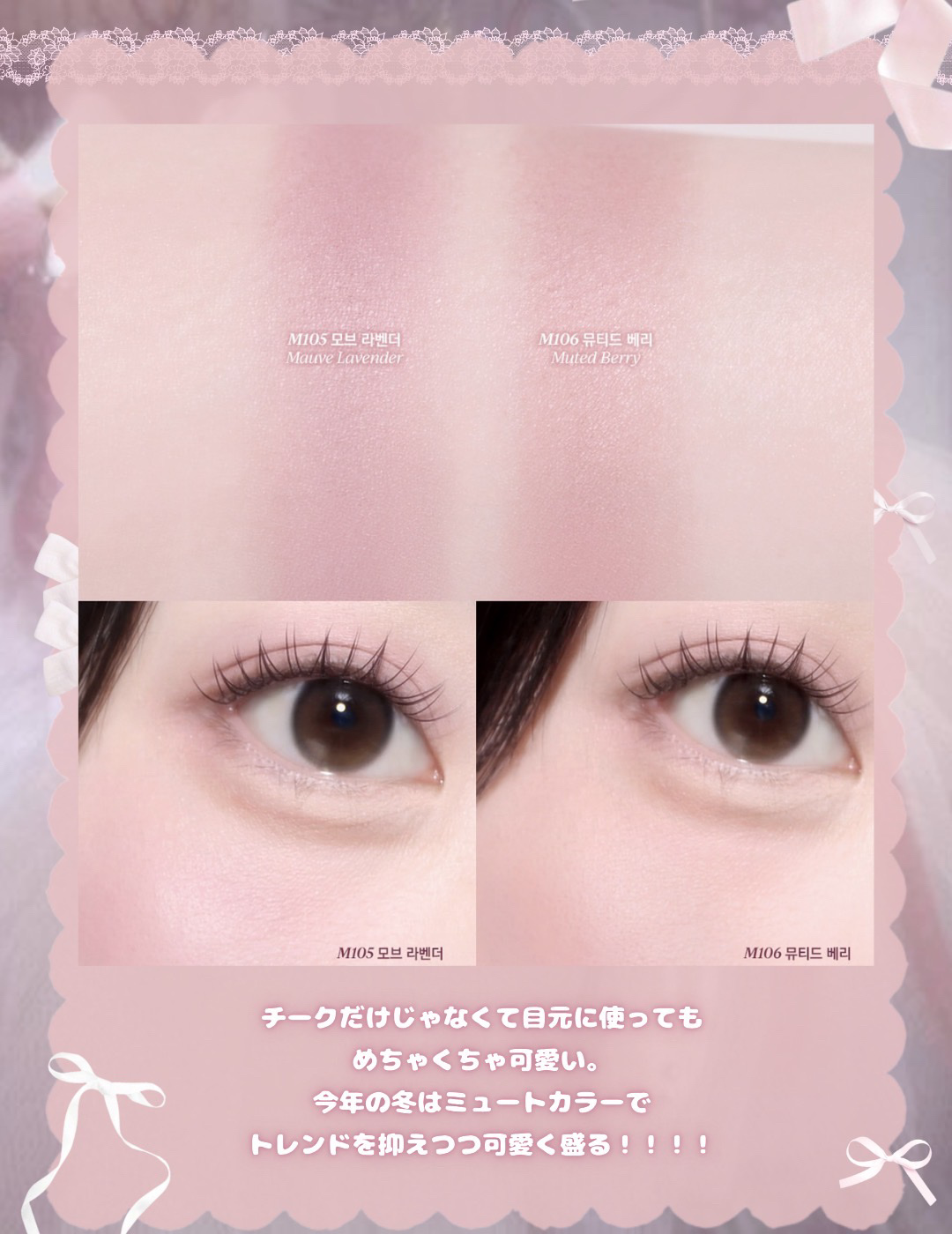 \ミュートカラーがメロすぎる!!!!!🩰/【CLIO】モーヴアーカイビングコレクション登場୨୧┈┈┈┈┈┈┈┈┈୨୧秋の透明感チークといえばこれ!CLIOの《エッセンシャルブラッシュタップ》から、サテンマットな質感がたまらない“モーヴ系2カラー”が新登場🩰💭✔M105モーヴラベンダー モデル使用カラー✨ ふんわり血色と深みを両立するバイオレットモーヴ🫐 影っぽさが出て、顔の立体感がぐっと上がる印象に♡✔M106ミューテッドベリー 甘さ控えめのくすみベリー🍓 ナチュラルなのにちゃんと可愛い“ほのベリーほっぺ”に🎀 CLIOならではのきめ細かさで、 肌に“じゅわっ”と染み込むような発色✨モーヴの血色感で一気に秋顔になれちゃう季節限定カラー!!!!!!透明感×品のあるムードで、今年の秋メイクをアップデート🩰使用画像は使用許可済みです🪽#秋の先取りコスメ#モーヴチーク#秋コスメ#新作コスメ#透明感メイク