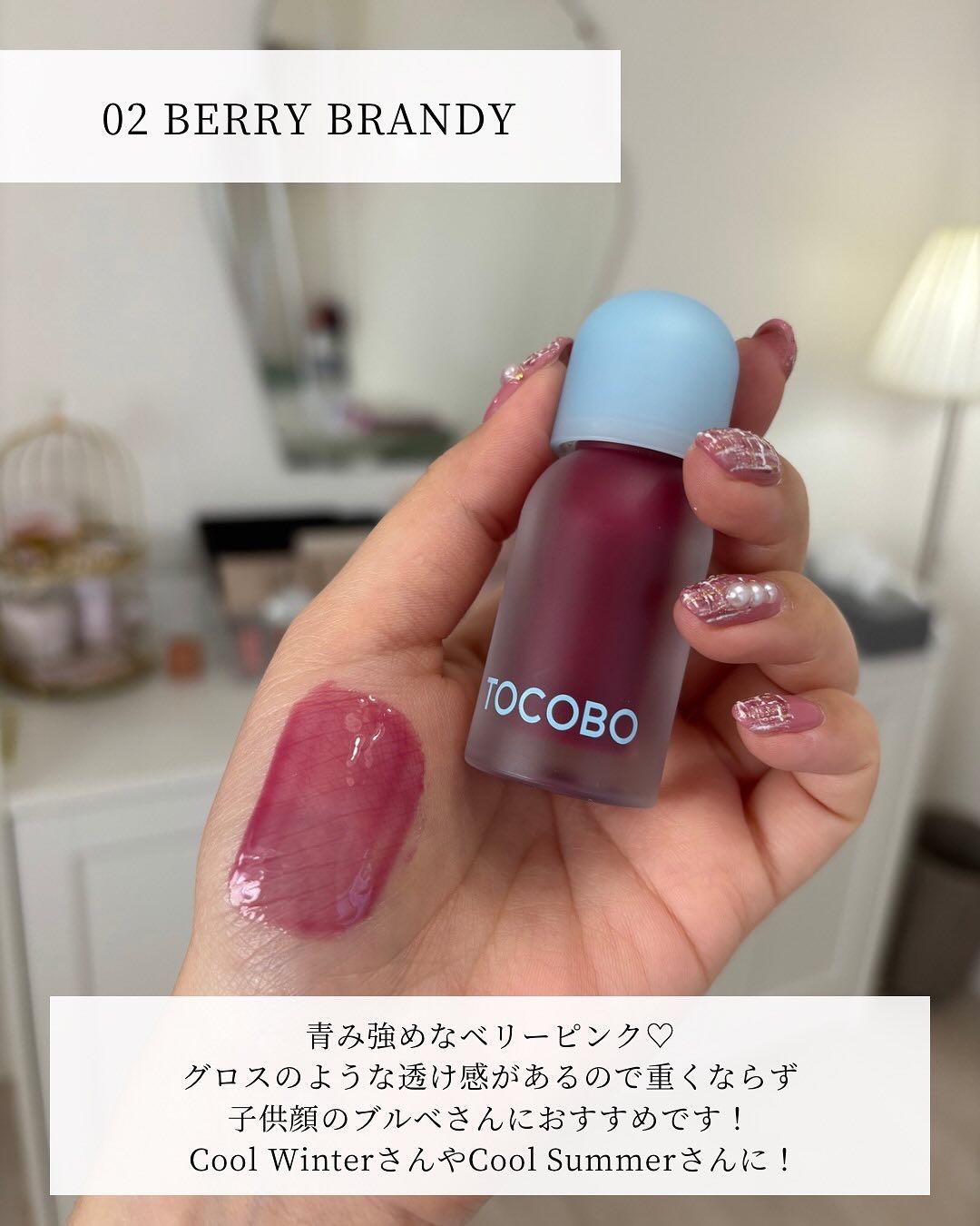 TOCOBO(@tocobo_jp)様よりジューシーベリープランピングリップオイル4色(00,03,06,16)いただきました✨ダブルプランピングでよりぷっくりと輝くシロップ光✨透明でクールに染まるベリーカラーからアイシーブルーバール、ぷっく...