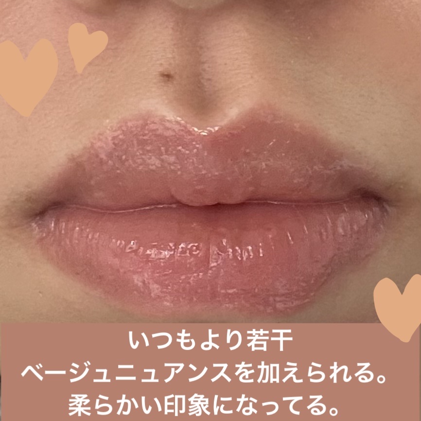 このヌードベージュ良いです。 ベージュのはずですが、私が塗るとピンクになりました。唇の色悪いからかな。 つやんつやんです。膜張ったみたい。唇荒れてるのわからないし、いつもより縦ジワ目立たない。 リップクリームというより化粧品感覚。 余談:手に塗ったの落としにくかったー。