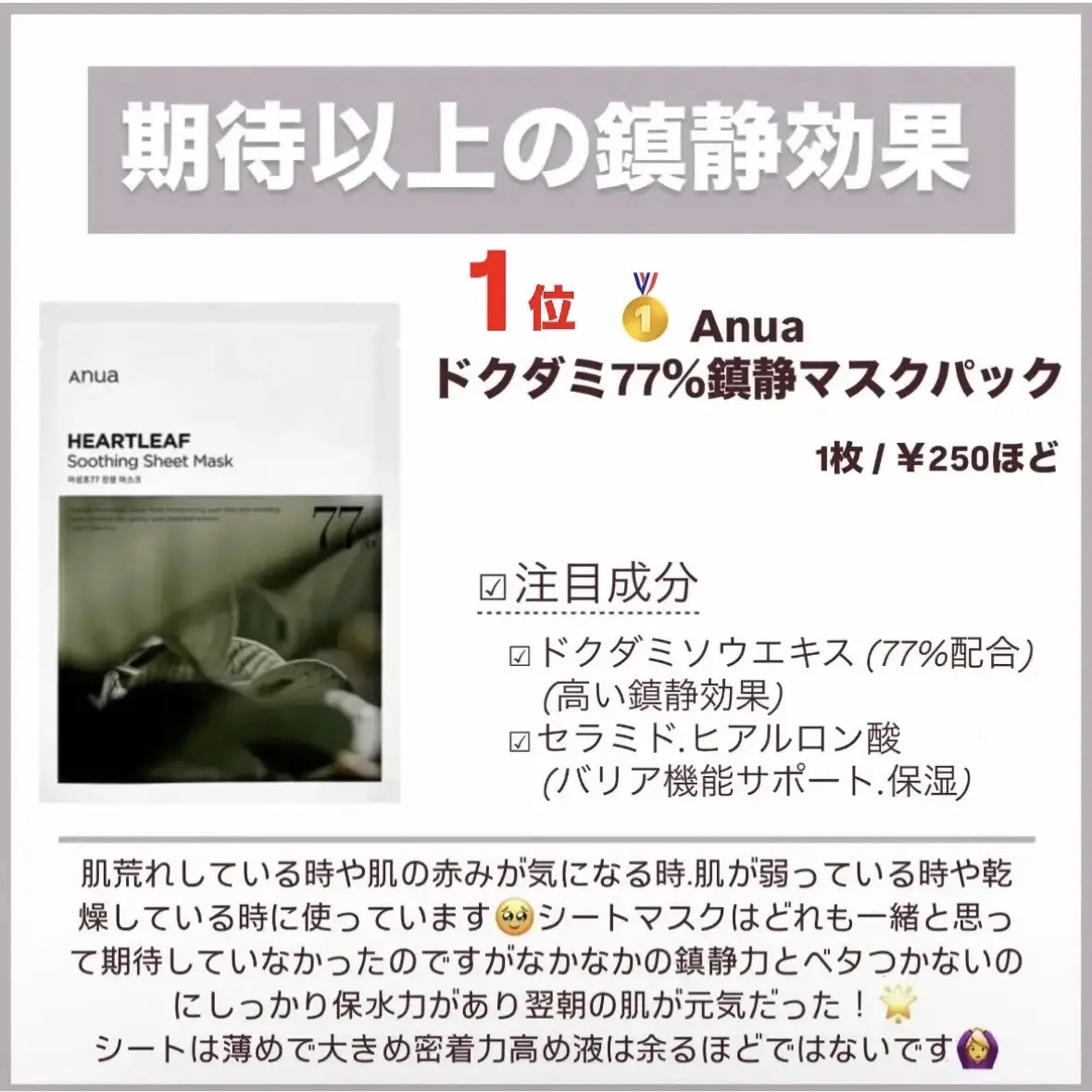 毛穴.ニキビに悩むインナードライの2025年ベストスキンケア発表‼️シートマスク編🥹皆様こんにちは、んーです🐰今回はベスコス発表シートマスク編をご紹介✨シートマスクは毎日は使用しませんが、肌の調子を見て大事な日の前日などに使うことが多いです✨...
