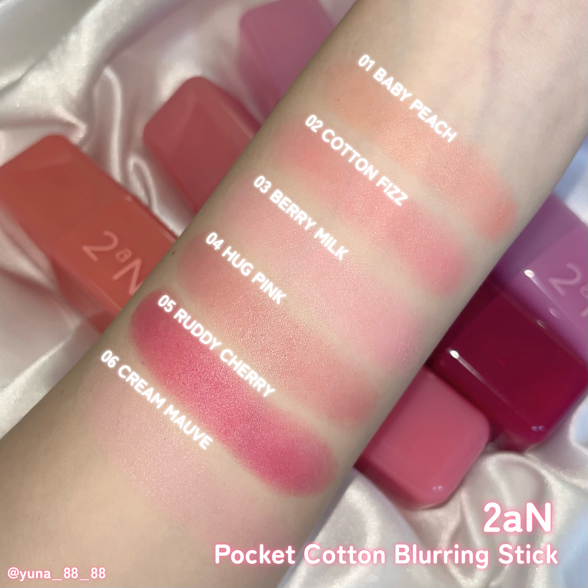 2aN(トゥーエーエヌ)・ポケットコットンブラーリングスティック韓国のビューティーブランド『2aN』の雲のようにふわっとさらさらな【ポケットコットンブラーリングスティック】6色を全色レビューᝰ✍︎マルチユーススティック ˎˊ˗1本で、チーク・...