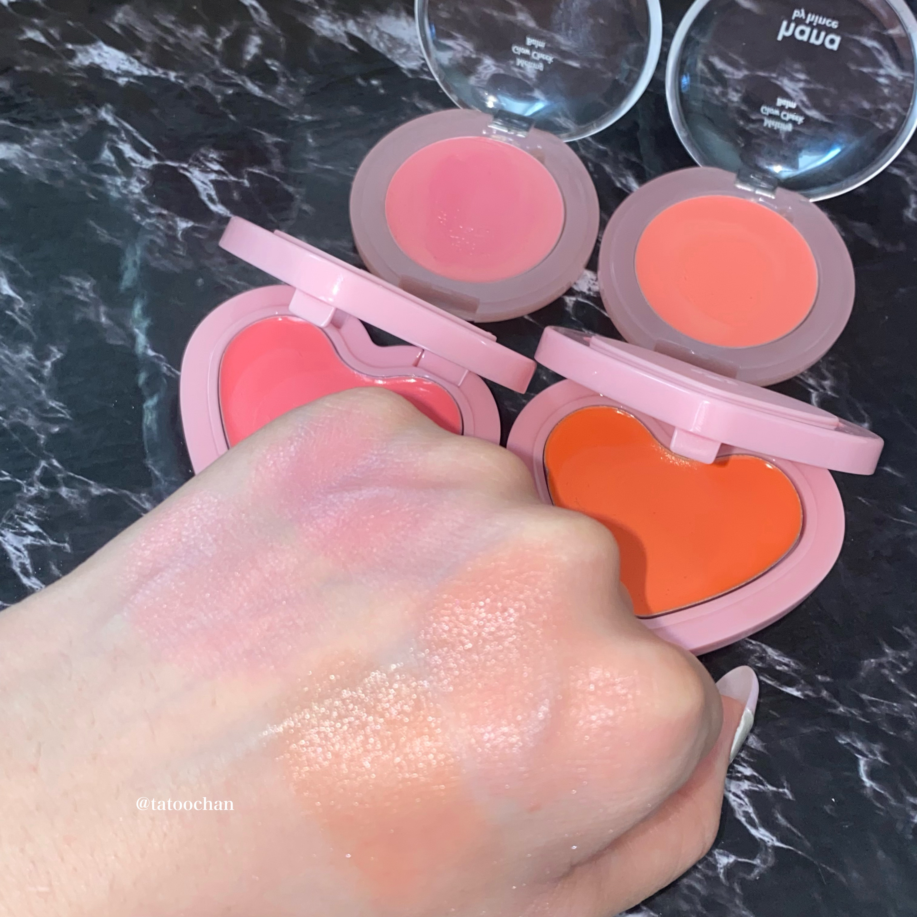 韓国クリームチーク2種類比較🩷🧡♡AOU GLOWYCREAMBLUSH01ChuruCheeks06TangerineCheeks♡hanabyhinceメルティンググロウチークバーム01モモ02ベリー元々パウダーチークよりはクリームチーク...