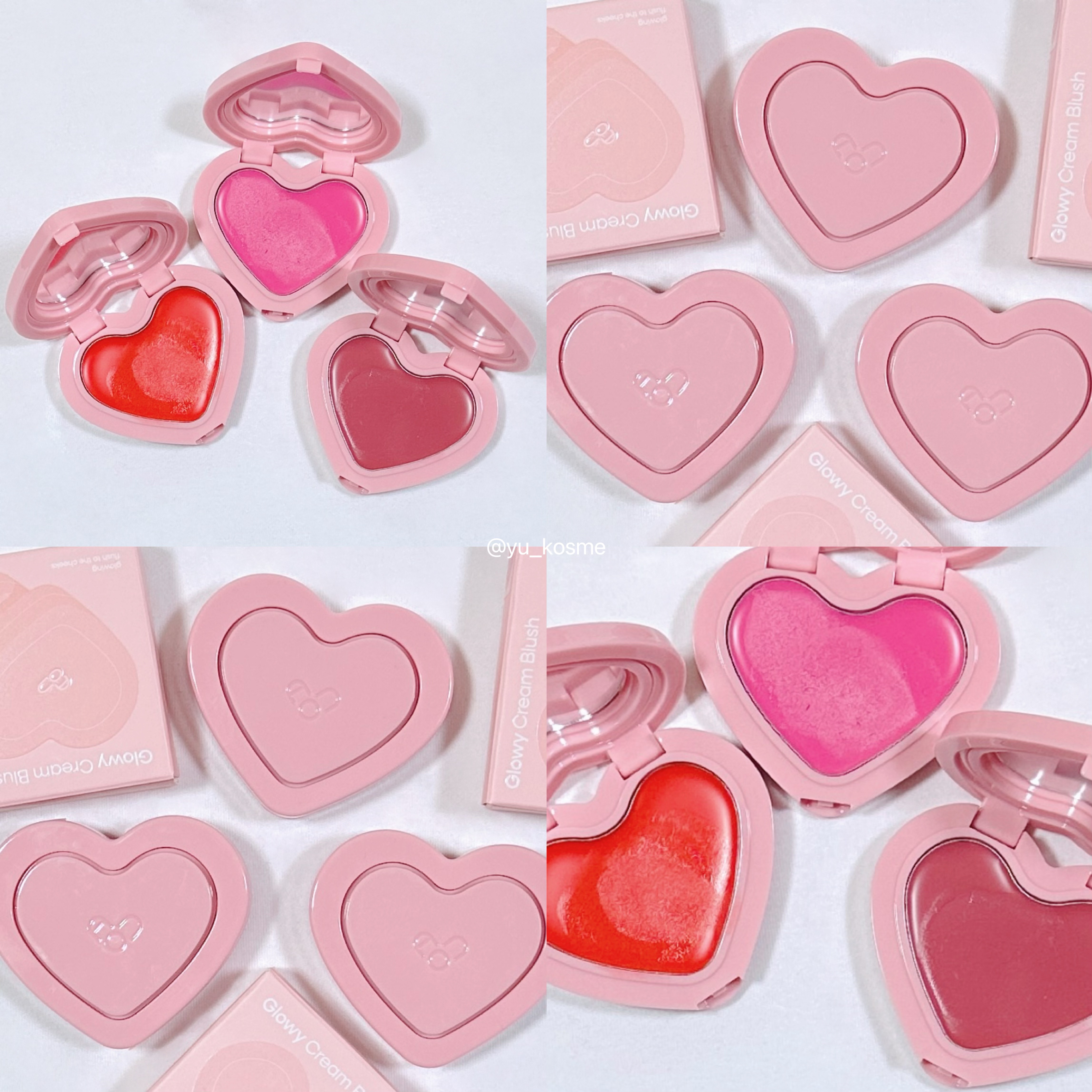 〻AOUの可愛すぎるチーク💓”𝗔𝗢𝗨▷𝗚𝗟𝗢𝗪𝗬𝗖𝗥𝗘𝗔𝗠𝗕𝗟𝗨𝗦𝗛▷𝗦𝗢𝗙𝗧𝗖𝗥𝗘𝗔𝗠𝗕𝗟𝗨𝗦𝗛ジェンガのように重ねて使えるハートパケ💓パケや色味の可愛さだけじゃなく使用感もおすすめしたい…!Glow/Matte二種質感で、Glowは...