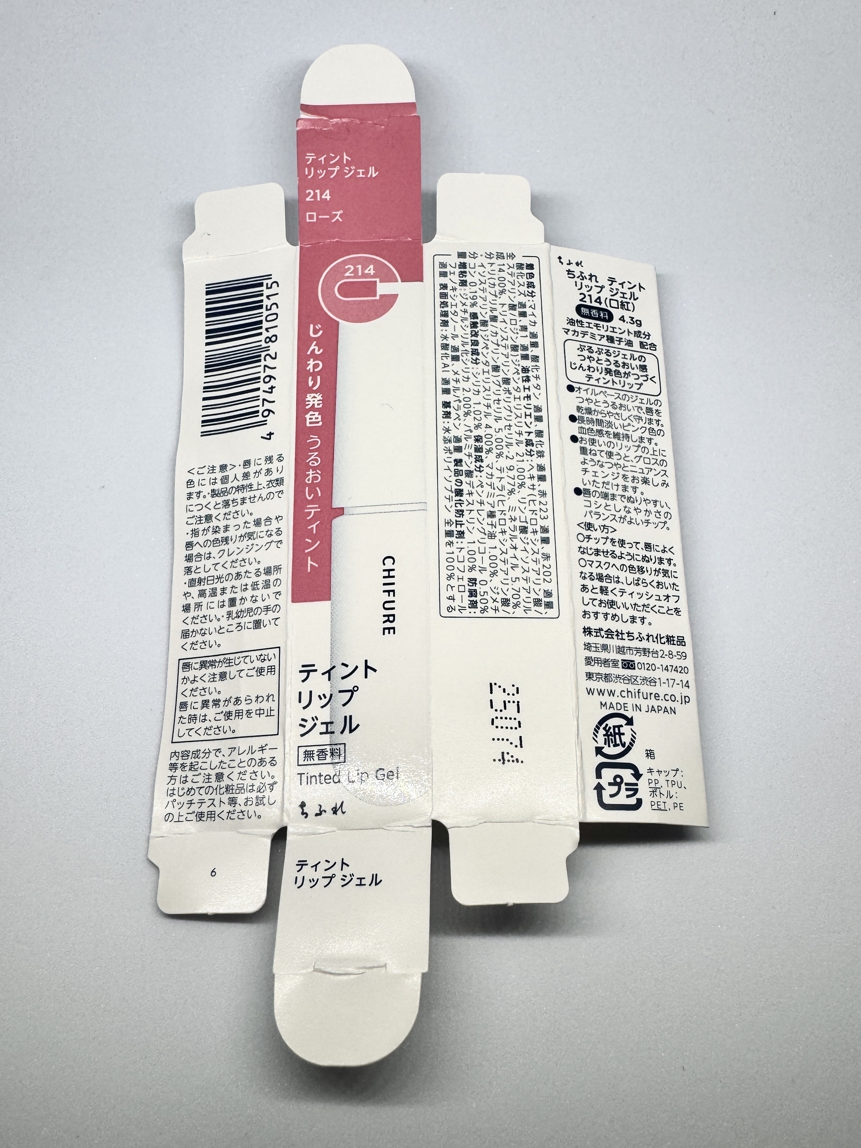 ちふれティントリップジェル214ローズ系こちらは#提供にてお試しさせていただきました。ありがとうございます!買おうと思ってたから嬉しかったです!めちゃくちゃ使い心地はよいです。さすがフィーと似てる!と言われるだけあり、赤転びなく、持ちも悪くな...