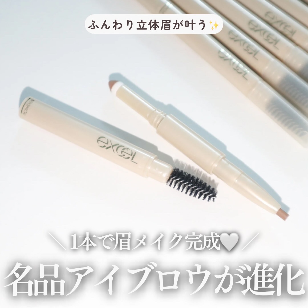 \3in1アイブロウがリニューアル/あの大人気のexcelザプライムアイブロウが新しくなって登場❗️パウダーも内臓されていて、1本あれば初心者でも美眉に仕上がる使いやすいアイブロウペンシル!美容成分*も配合されてるよ✨⧉3機能もパワーアップし...