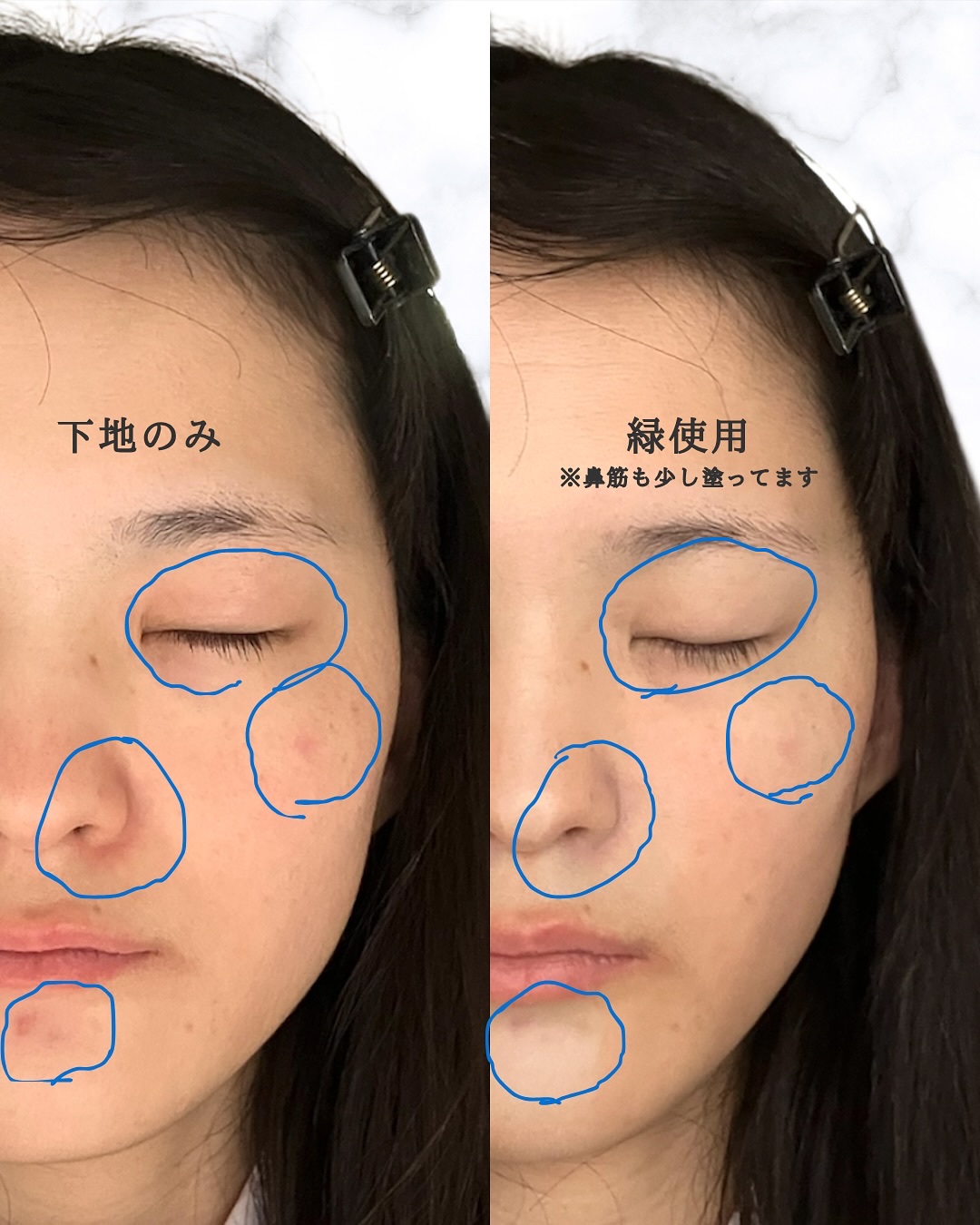 小鼻まわりの赤みが酷いので購入しました。色黒なのでだいたいのグリーン下地やグリーンコンシーラーは白っぽく発色するだけになってしまうのですが、こちらは少し暗めのグリーンなのでカラー補正力を感じられました。みずみずしいテクスチャーで伸びがいいので...