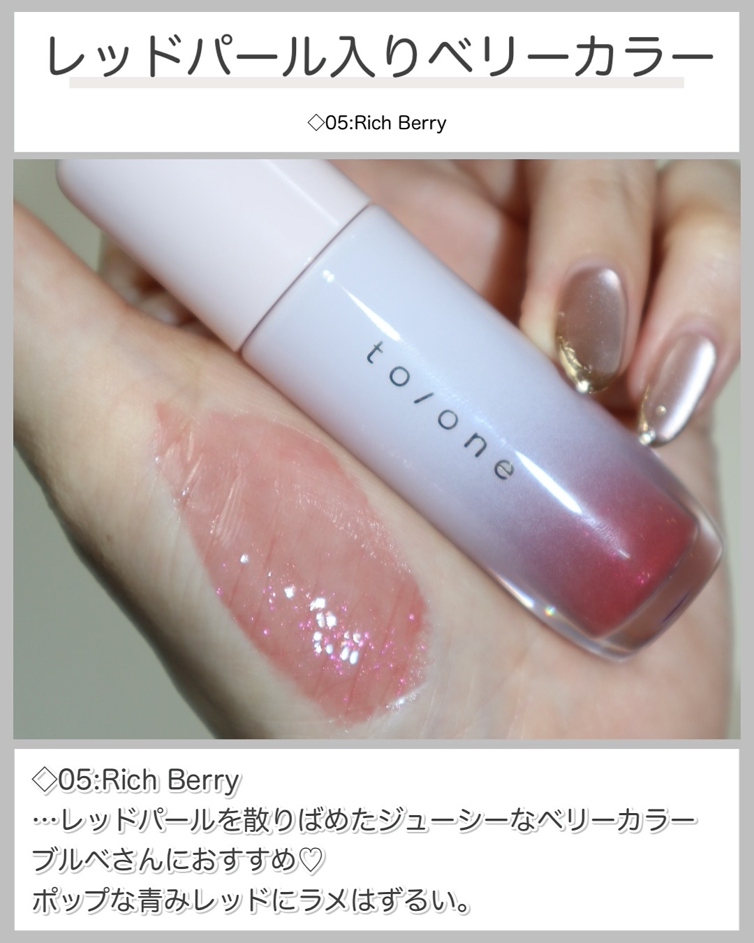 新色可愛すぎて声出た🫠🤍トーンのグロス、比較的発色が良くて既存色も大好きなんですが新色はパールが入って更に可愛さがパワーアップしてた!!キラキラ好きにはたまらんこの輝き、ぜひ実物をチェックしてほしい!個人的な推しは05🫶🏻@toonecosm...