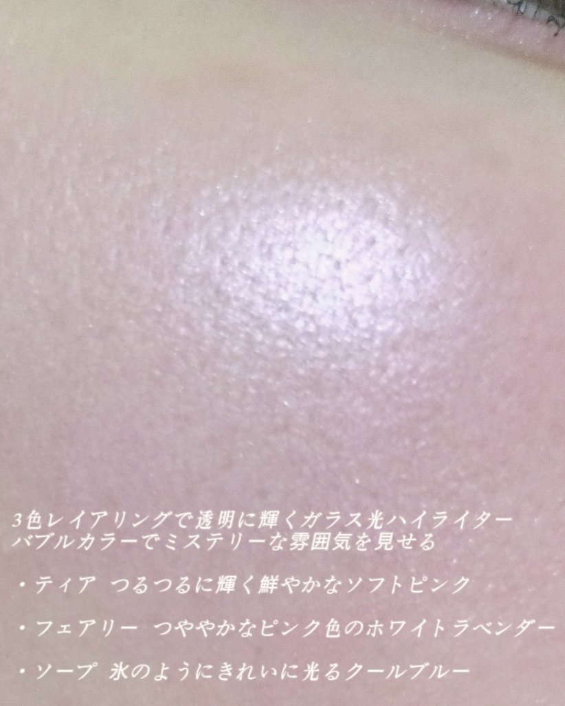 toocoolforschool アートクラスバイロダンハイライター #3バブルブラン3色レイアリングで透明に輝くガラス光ハイライターバブルカラーでミステリーな雰囲気を見せる・ティアつるつるに輝く鮮やかなソフトピンク・フェアリーつややかなピンク色のホワイトラベンダー・ソープ氷のようにきれいに光るクールブルー●感想サラッとした質感で、パールよりは粗めかな。ギラッギラではなく細かいラメだと思います。ミックスするとブルー、ピンク、偏光ピンク爽やかな色味のハイライトで光に当たるとピカッと光って可愛いです!!#toocoolforschool #アートクラスバイロダンハイライター #ハイライト #バブルブラン #新シーズンあか抜け計画