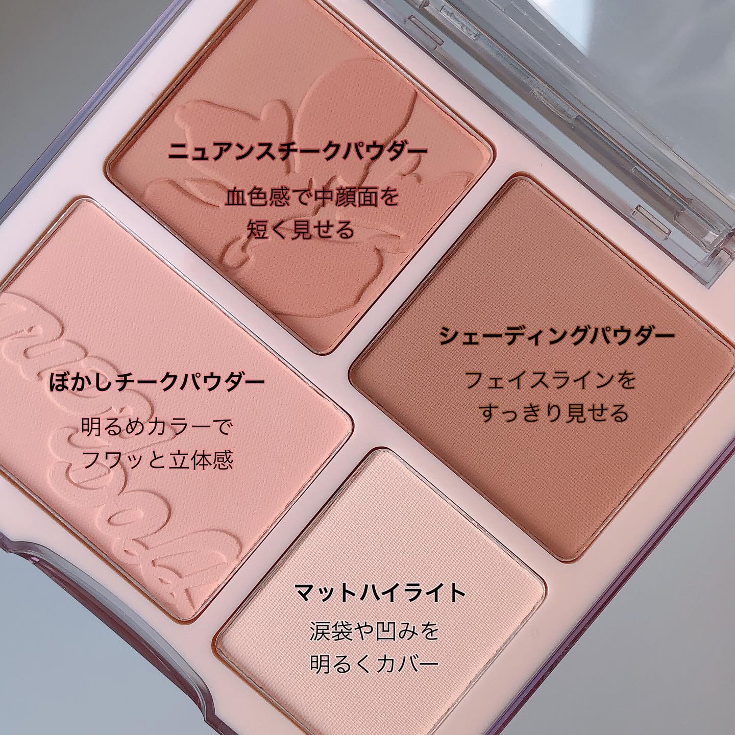 小紅書(RED)で見てて、早く新色日本にも来ないかなーと思っていました!今回は4色ともパウダーです。01〜03に入ってたクリームチークが好きだったので残念に思いましたが、新色2色共可愛かったです🩷06はベージュということですが、そんなに暗過ぎ...