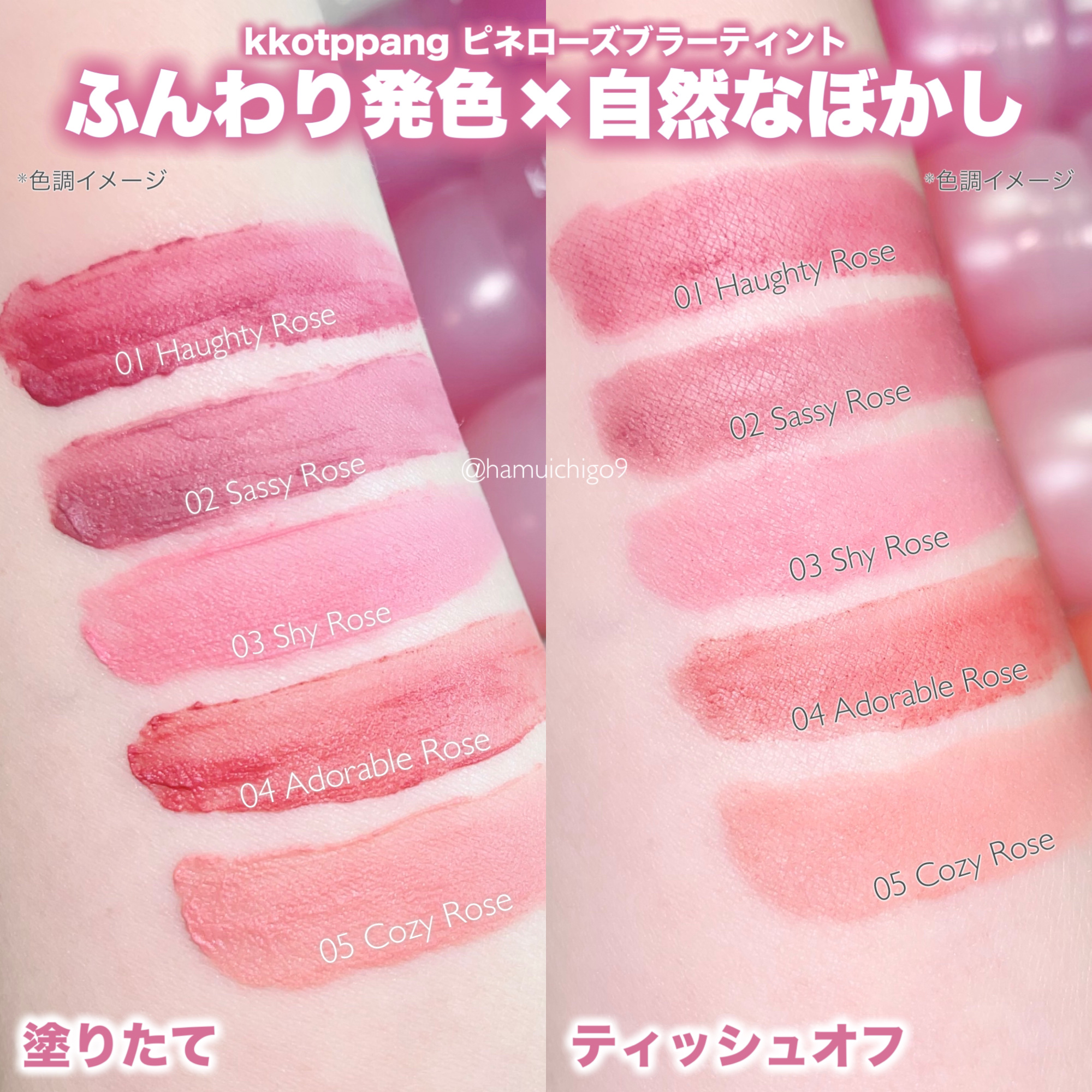 【kkotppang】ふんわりやわらか花びらブラーティント💐提供:kkotppang様紹介コスメ⊹kkotppangピネローズブラーティント全5色-01ホーティローズ-02サッシーローズ-03シャイローズ-04アドーラブルローズ-05コー...