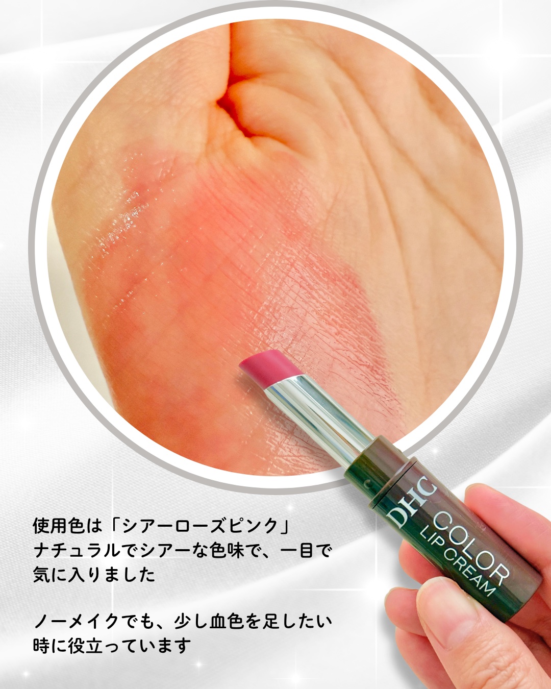 DHCリップクリームシアーローズピンクを使ってみたのでレビューしますシアー(透け感)発色と濃密保湿がポイントとなっているらしい♡パケは落ち着いたモーブ系のブラウンカラー🤎持ち歩きしやすいサイズ感なのもうれしいポイント秋らしさもありかわいいです♡テクスチャーは、“すっとなじむ”ように唇の上を心地よく滑るような使い心地でした❣軽やかさの中に、ほんのりとコクのあるテクスチャーでやさしく塗り広げやすかったです◎べたつきすぎず、でもしっとりとしたツヤが残るような使い心地✨「塗ってます!」という重さがなく、素の唇がきれいに見えるような仕上がりなのがお気に入りです♡重ね塗りすると、色に少し深みが出て上品な印象に厚塗り感は出にくく、縦ジワにも入り込みにくいので、唇表面がなめらかに見えるのがうれしいポイント。色は名前の通り“シアーローズピンク”。透け感のある発色で、唇本来の色をほんのり引き立ててくれるような使い心地でした🎀強い発色ではないから、ナチュラルメイクにもすっとなじむバランス感が好みでした♡唇になじみやすい透け感のあるシアー発色なのでこれ一本でも、口紅の下地としても使える、使いやすい色合いだと思います。“お休みの日の軽めメイク”にも、“きちんとメイク”にも合わせやすいカラーです。UVカット(SPF22/PA++)機能もついているので、日中のちょっとした外出や外でのケアにも使いやすいところが嬉しい🌞プランパー処方※とのことで刺激とかが気になりましたがプランパーのようなピりっとした刺激感はなく、重ねることでふっくら見えるような“見た目補正”があるような印象でした🥰唇をいたわりながらメイクできるリップという印象です💗ポーチに1本入れておけばマルチに使えそうなので他の色味もチェックしようかと思います全国のドラッグストア・大型スーパー・バラエティーショップ等で販売中なので気になる方はぜひチェックしてみてくださいね ※メークアップ効果による#PR#DHC#カラーリップ#保湿リップ#DHCリップ#プランパー