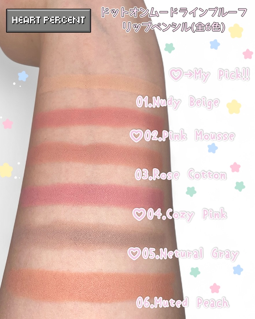 ꔛෆその他の投稿🐰@a_popn_life𝐇𝐞𝐚𝐫𝐭𝐏𝐞𝐫𝐜𝐞𝐧𝐭ドットオンムードラインプルーフリップペンシルꔛෆ❤️𝑯𝑬𝑨𝑹𝑻𝑷𝑬𝑹𝑪𝑬𝑵𝑻アンバサダー活動中ハートパーセントのアンバサダー投稿も早いもので今回が最後です😭最後は色持ち最強すぎるリップペンシルのご紹介🎀韓国のサロンや、有名美容系YouTuberの方もオススメしている、実力派だよっ💓リップペンシルって、唇にいい感じに塗ってもその後重ねるグロスとかリップに持ってかれてなかった事に…なんてこと、よくありません?それが嫌で今までリップペンシルはあんまり使ってなかったんだけど…これに出会ってから世界が変わった🌏笑まずめっちゃくちゃスルスル描けるの!硬い鉛筆みたいなリップペンシルだと唇痛いし、その割に色乗らないし😭みたいな事がと多かったんだけど、これは描きやすくて一発で色がしっかり乗るから最高🍒ྀིそして脅威の色持ちの良さ!!その時間なんと12時間持続とか。塗布してしばらくすると、どんだけ擦ってもビクともしなくなります、これホント😳なので上からグロスとかグリグリ塗り塗りしてもそのまま残ってくれるので、グラデーションとかもしやすい🫧また、塗りたてはぼかしたりもできるからリップペンシルとしてだけではなくチークやシャドウシェーディングにも使えるマルチユース商品です⟡.·私は涙袋に使うこともあるっ!全6色展開なんだけど、どれもニュートラルカラーでPC問わず使いこなせそうっ。私のお気に入りは02ピンクムースと05ニュートラルグレー、06ミュートピーチ🍑02と06はリップに、05は鼻下に影っぽく入れると人中短縮効果があってよく使ってる🥰私みたいに(リップペンシルはすぐ落ちて使う意味がよく分からない…)なんて人に使ってみて欲しい。概念変わる!この使い心地、みんな体験してみて🎀ハートパーセント公式アンバサダー第1期はこれにて終了。悲しい…ですが!なんと第2期にも選んでいただき引き続き魅力をお伝えできることになりました🎀ありがとうございますっっ🌼これからもたっくさんの可愛くて使える商品をお伝えできるように頑張ります💪✧︎*。⋆⸜𝖳𝗁𝖺𝗇𝗄𝗒𝗈𝗎𝖿𝗈𝗋𝗐𝖺𝗍𝖼𝗁𝗂𝗇𝗀⸝⋆𝐋𝐈𝐊𝐄🩷𝐂𝐨𝐦𝐦𝐞𝐧𝐭💭𝐅𝐨𝐥𝐥𝐨𝐰🤝喜びます·͜·♡✧︎*。---------꒰♡꒱---------#PR#heartpercent#ハートパーセント#公式アンバサダー#ハートパーセントアンバサダー#12時間ロングラスティング#ラインプルーフリップペンシル#人中短縮メイク#Qoo10#韓国コスメ