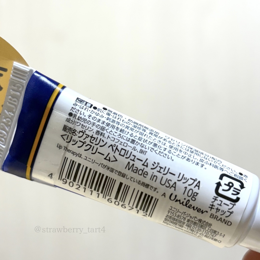 これ10代の頃みんな使ってなかった?♡敢えて投稿するか迷いましたが最近また購入しました◇Vaseline◇▶︎ヴァセリンペトロリュームジェリーリップ私は色つきリップでも大体唇が荒れる程肌が弱いので、何度もこれに助けられています敏感肌でも使えてしっかり保湿もしてくれて肌が弱っている時にも使いやすいですプロペトがリップになったようなアイテムで特に冬はこれがないと無理です✨敢えて気になる点は香料があんまり好きじゃない高級リップクリームみたいな軽やかさはなくべたつく というところです他のメーカーからも似たようなものが幾つか出ていてどれも気になります♡おすすめあれば、是非教えて下さい!#購入品#人生コスメ#リップクリーム#冬本番に向けた肌仕込み