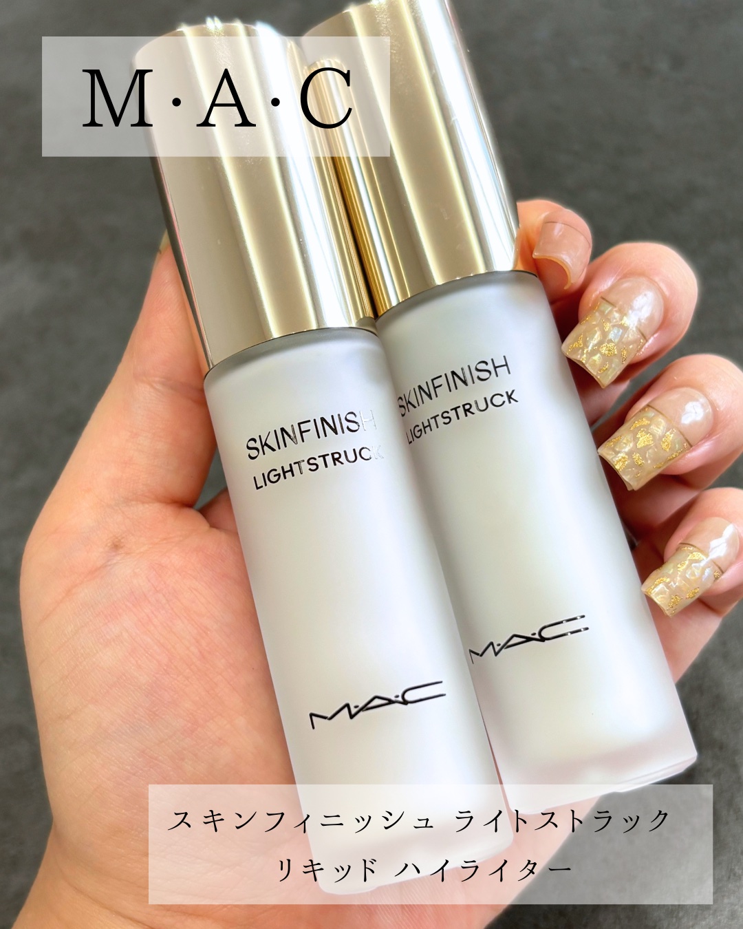 M・A・C新作❣️スキンフィニッシュライトストラックリキッドハイライター🌟仕込みにも仕上げにも使えるリキッドハイライター✨まずは気になった2色を購入🥰カラーは【スペーススリッパーズ】【グレイシャル】の2色❣️テクスチャーは軽くて伸びが良いから...