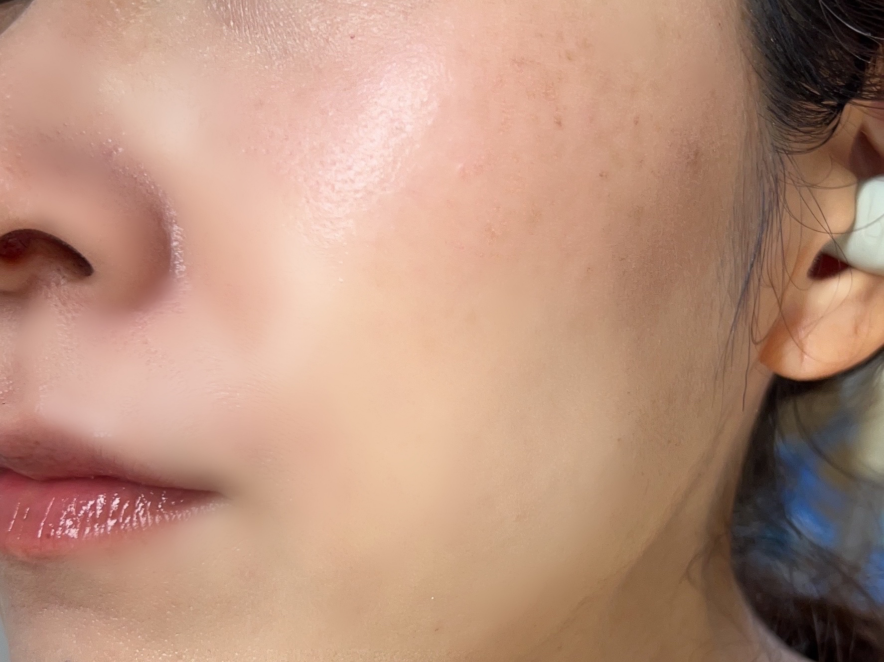 ほわほわした青みピンク。粉はサラサラで乾燥肌ですがパキパキ乾燥崩れとかにはならず良かったです👍️とにかく、色可愛い!目視した限りではパールとかラメとかは入ってないかな。毛穴落ちなやみがあるので、ここ↑重要!!!!マットです。淡い発色で付けすぎ...
