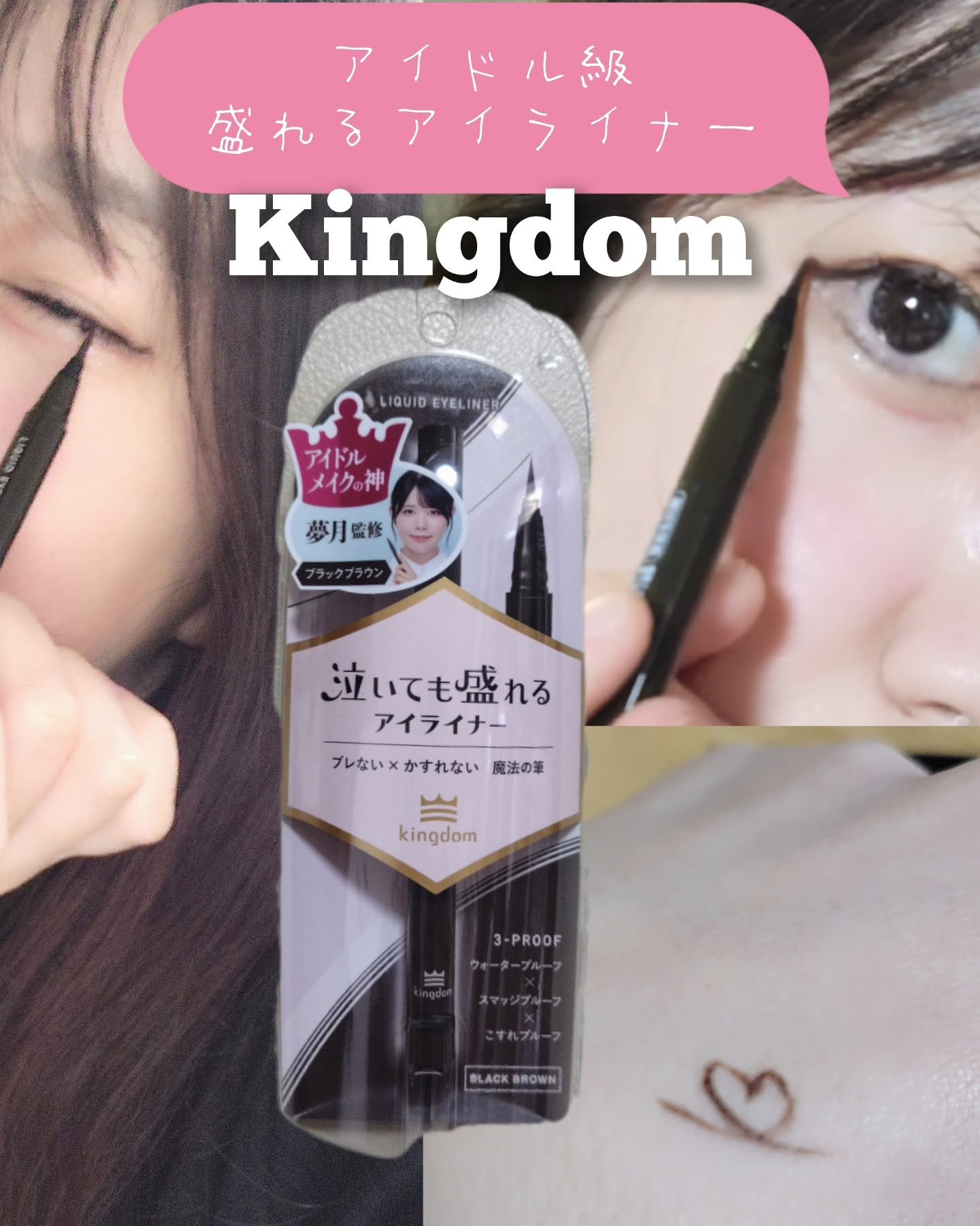アイドル級"泣いても盛れるアイライナー"꒰♡꒱❦キングダムリキッドアイライナーTPブラックブラウン¥1,650メイクアップアーティスト夢月さん監修アイライナー✩.*˚擦れや水、皮脂に強く、耐久性のあるアイテムです♡︎ᵎᵎᵎ確かに耐久性よくて、...